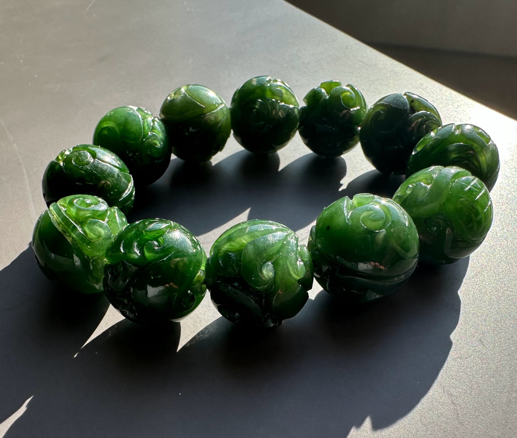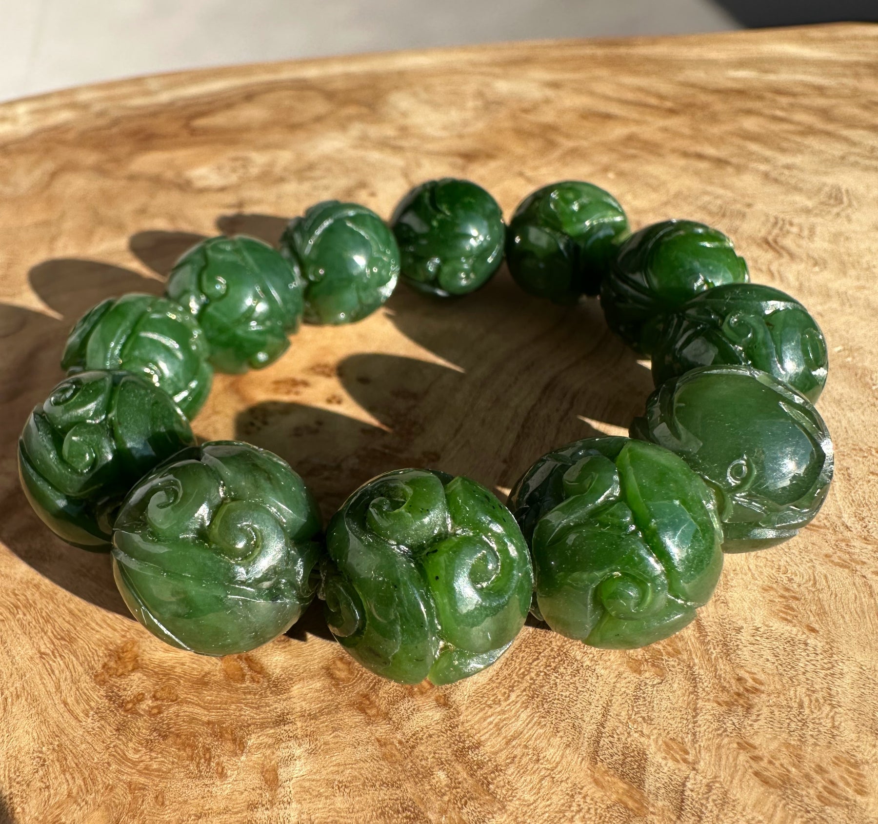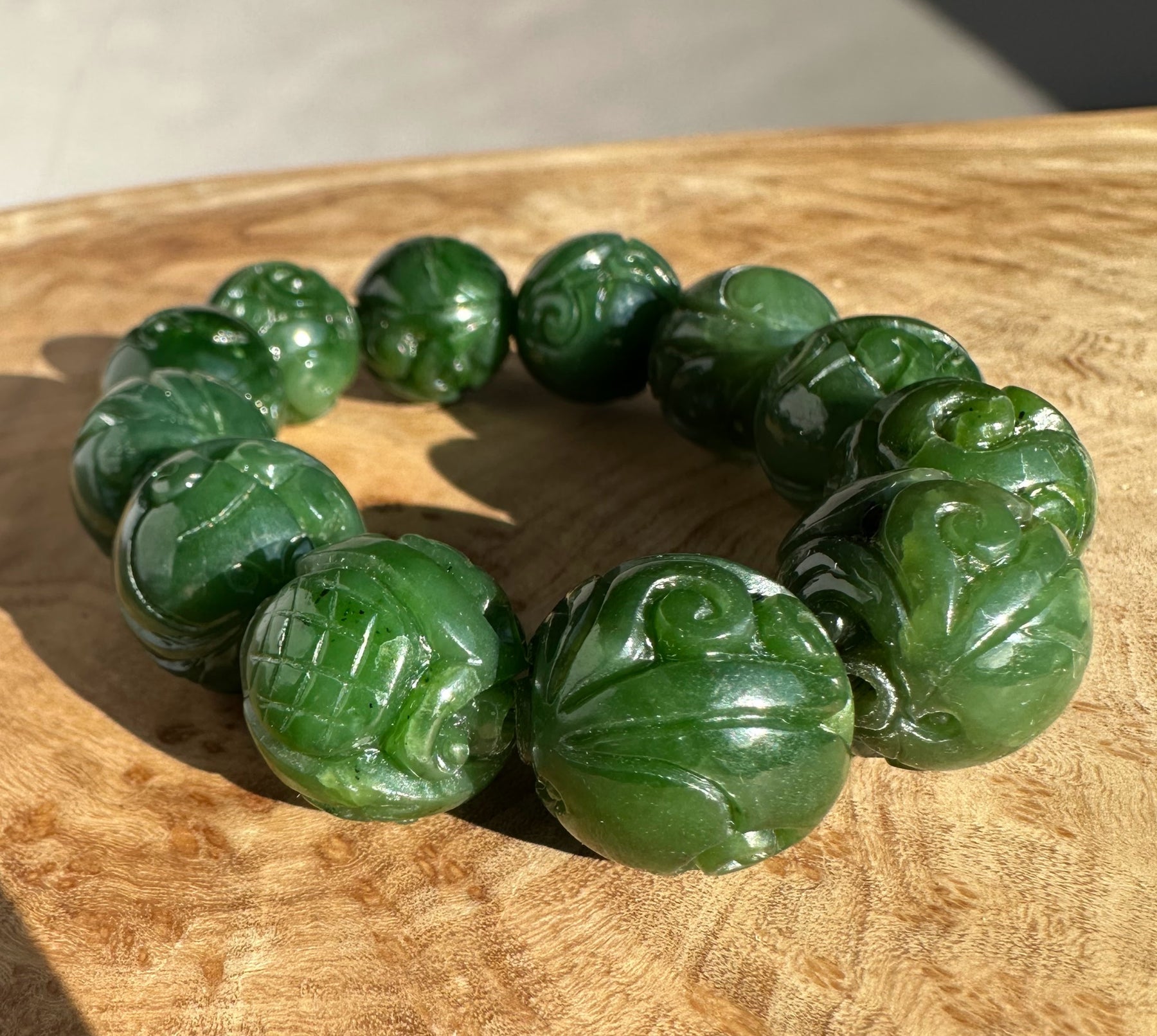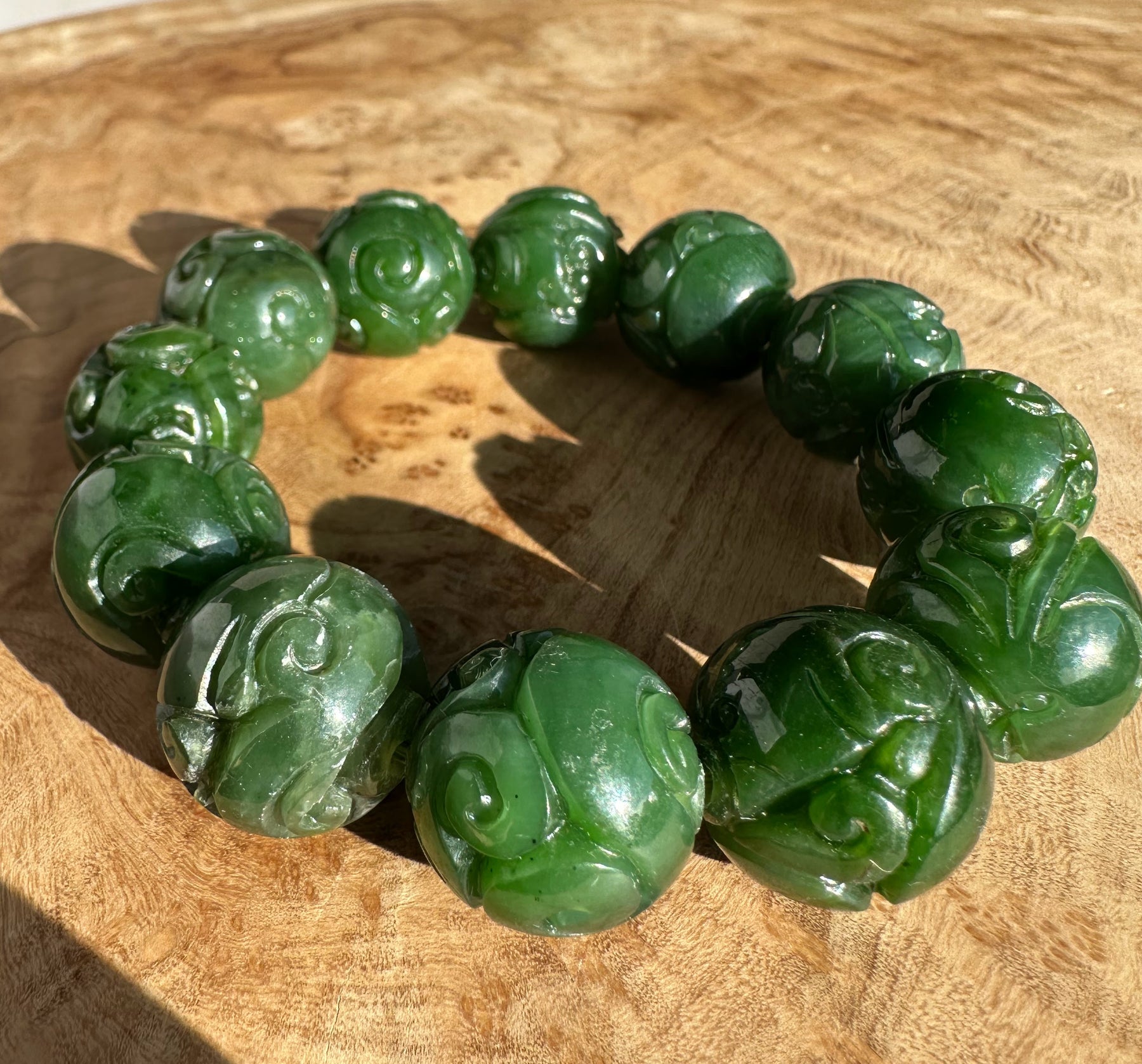 17 to 18mm A Grade Rich Green Canadian Nephrite Jade Beads