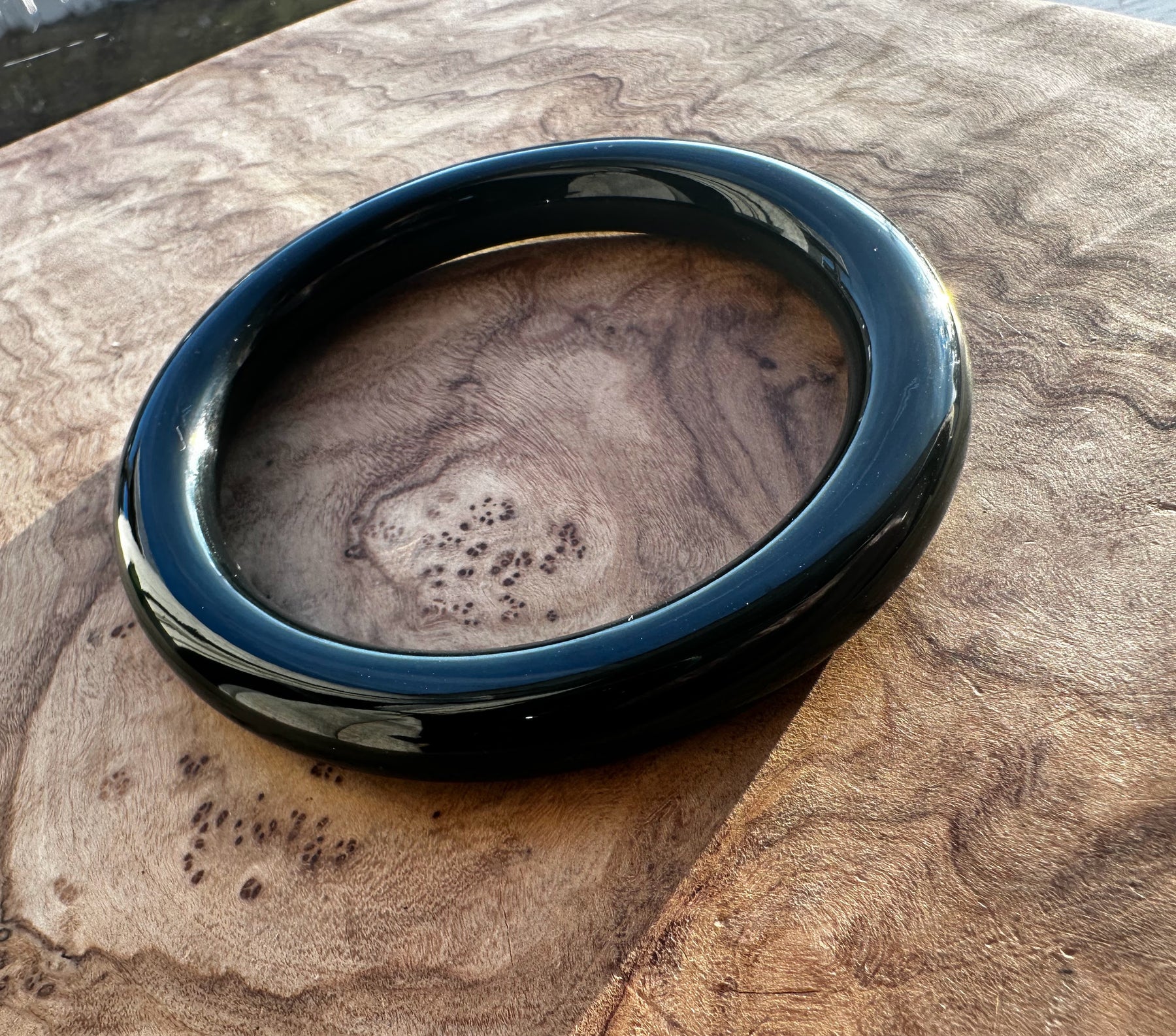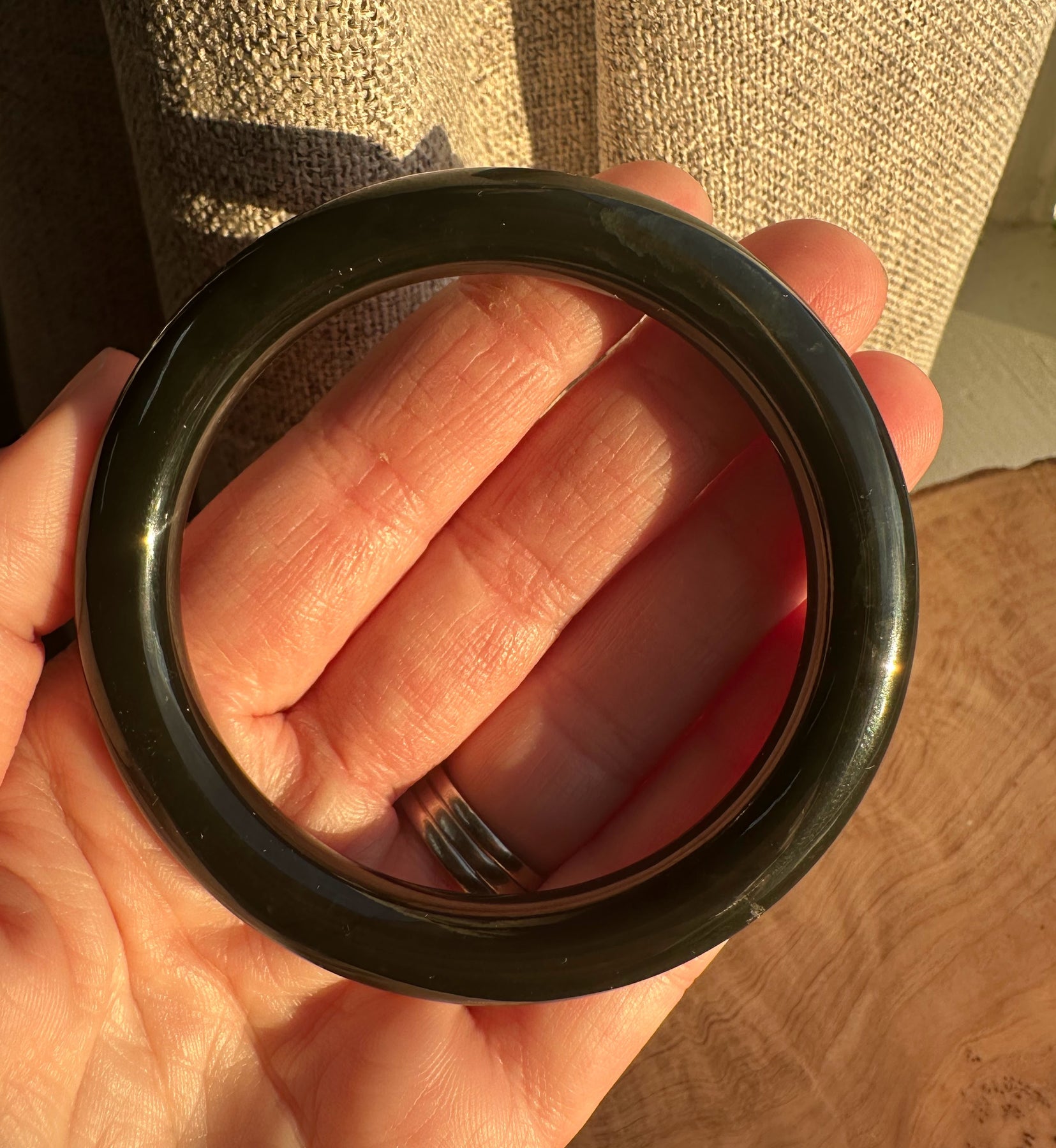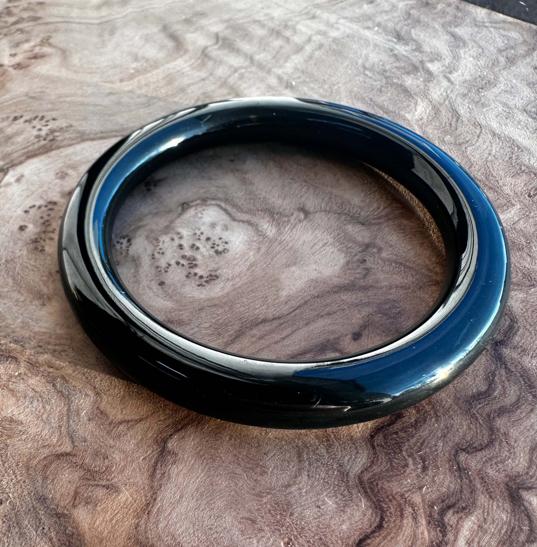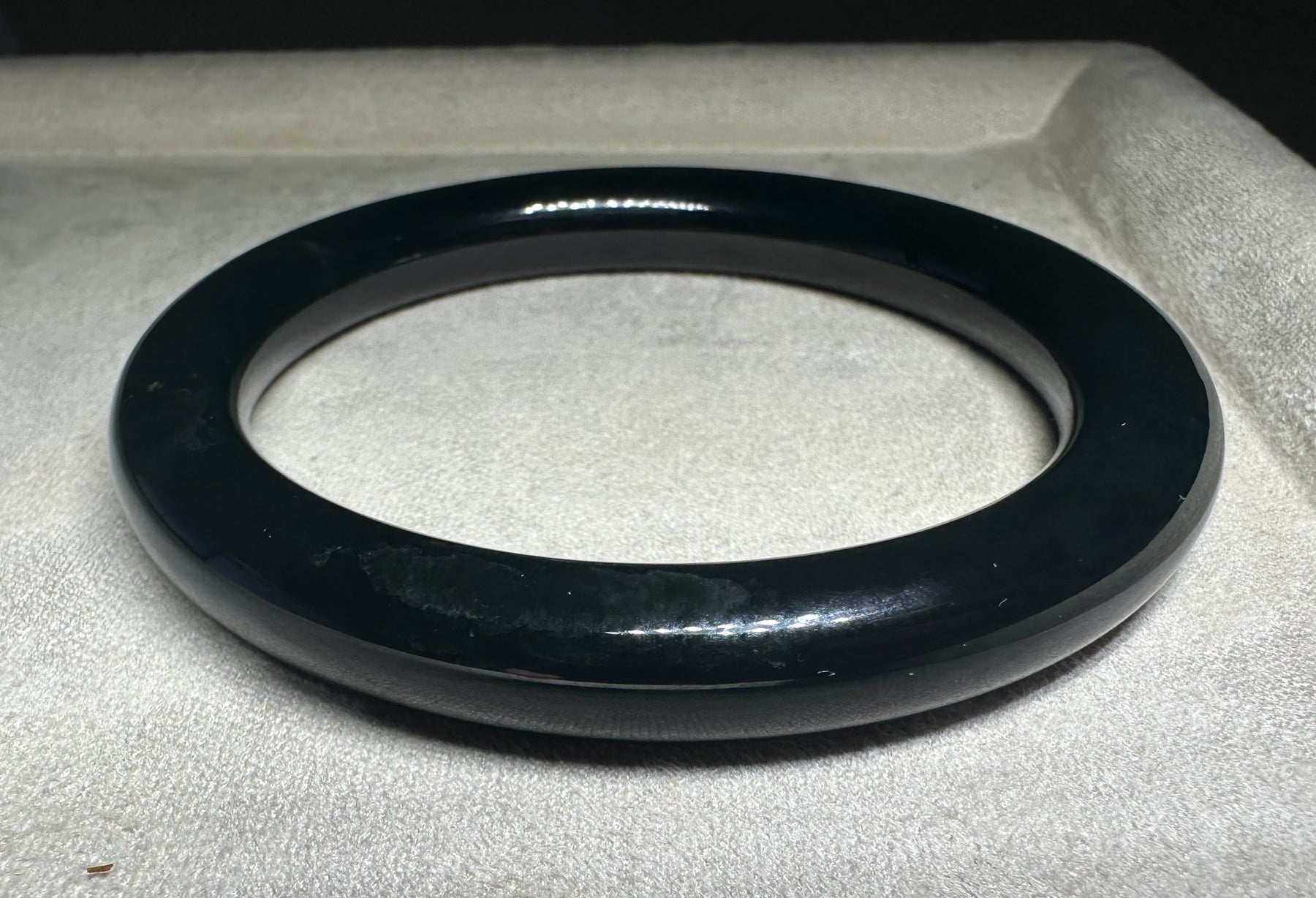 Australian Nephrite Jade Bangle, black in appearance, has some fractures at the top