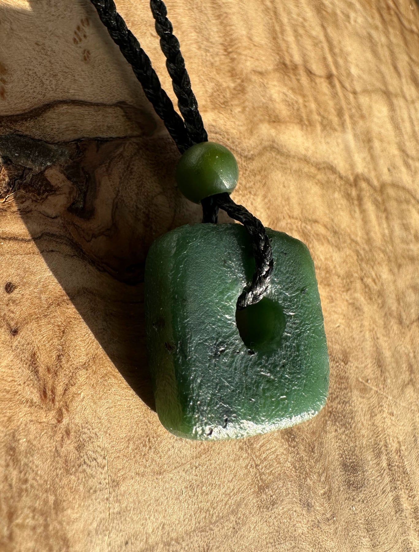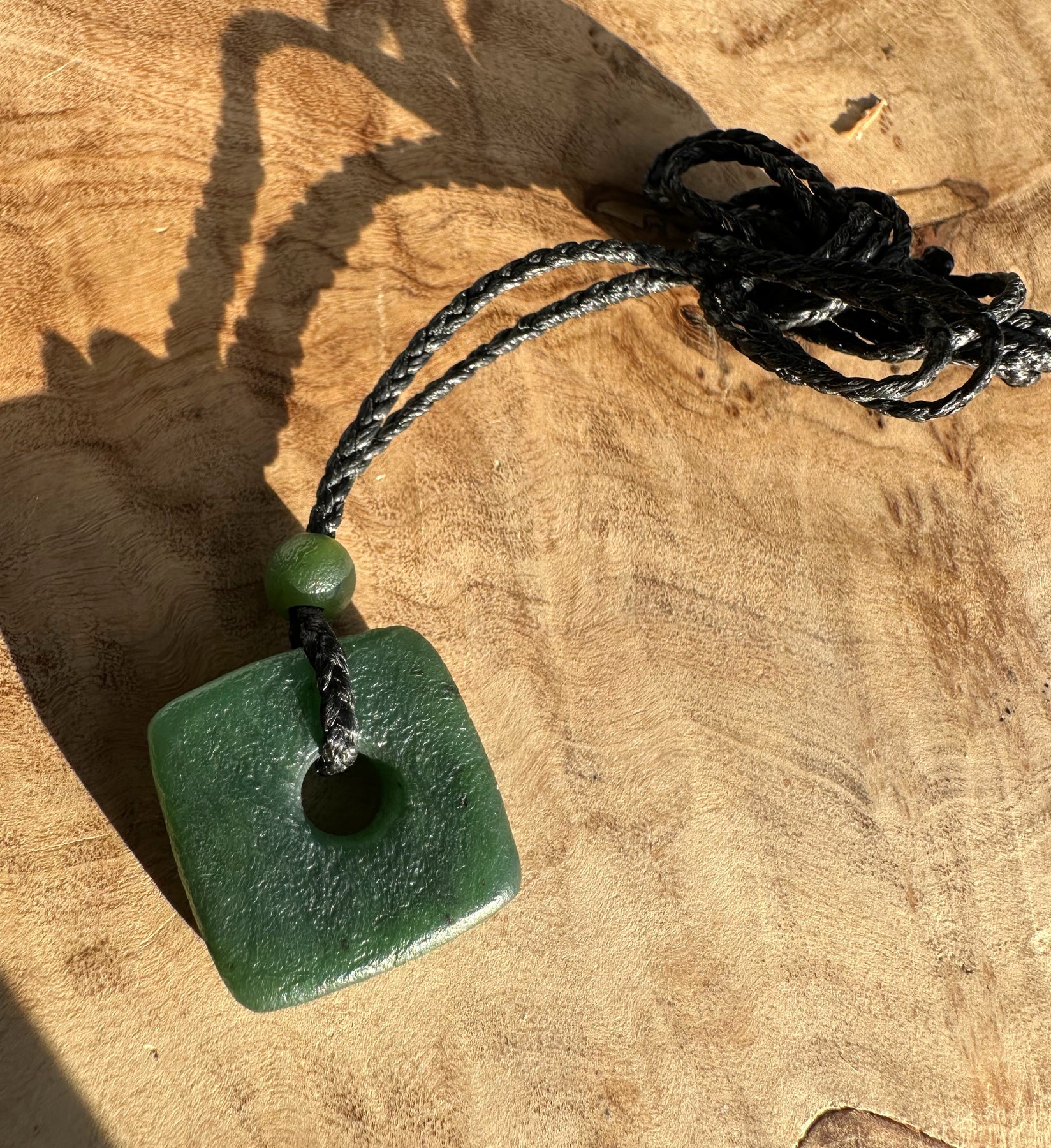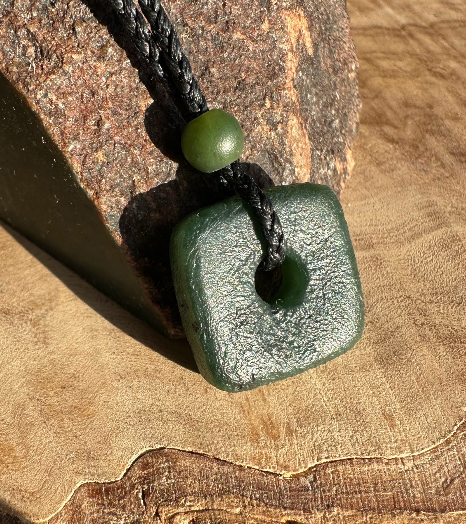 This unique pendant features a genuine Canadian Nephrite jade bead, carefully textured with a Lychee finish and sized at 20mm for a striking focal point. Suspended on a comfortable, adjustable, braided wax cord, it adapts to your preferred length and style. The natural beauty of jade makes each piece unique, while the textured finish catches light beautifully.