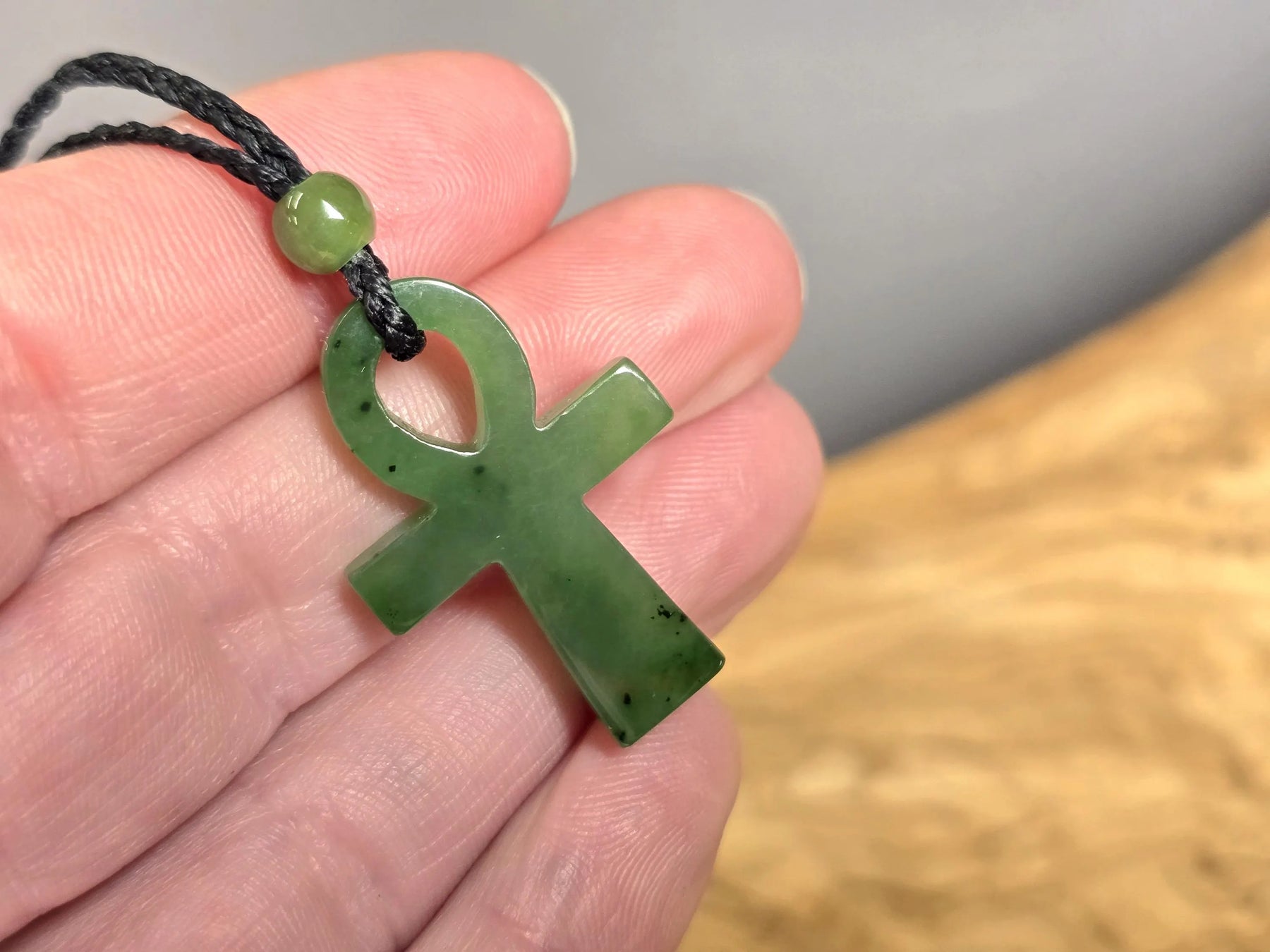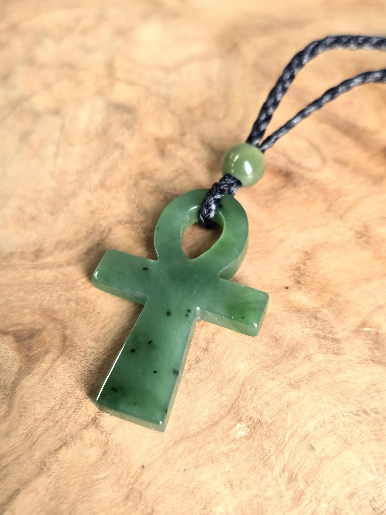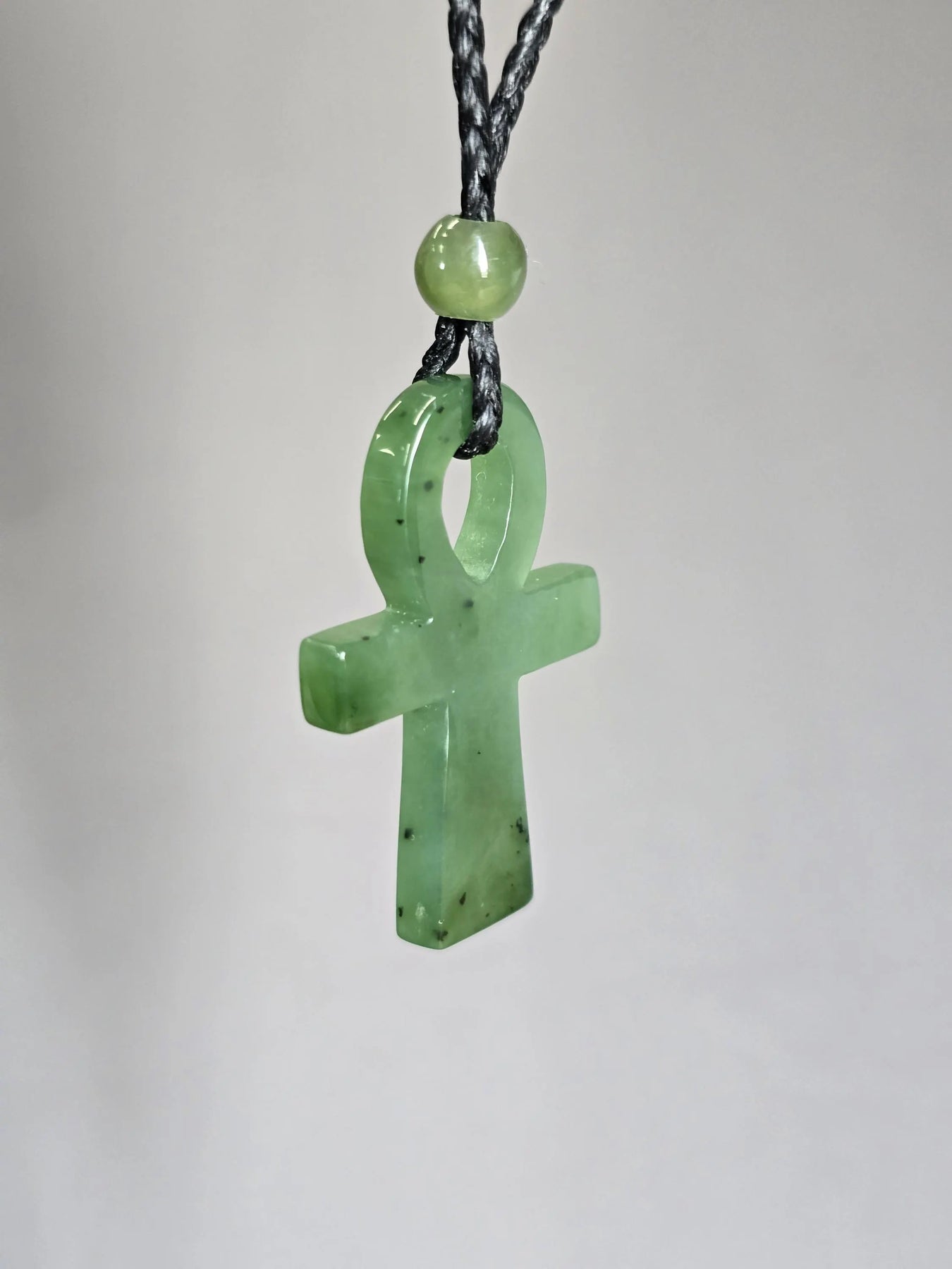 This Canadian Nephrite Jade Ankh Pendant embodies timeless symbolism, representing vitality and spiritual awareness across cultures. Crafted from authentic nephrite jade, the pendant measures 22x34mm and serves as a meaningful accessory for those drawn to ancient wisdom traditions or seeking a tangible connection to life's deeper significance. The piece works equally well as a personal talisman or thoughtful gift. S