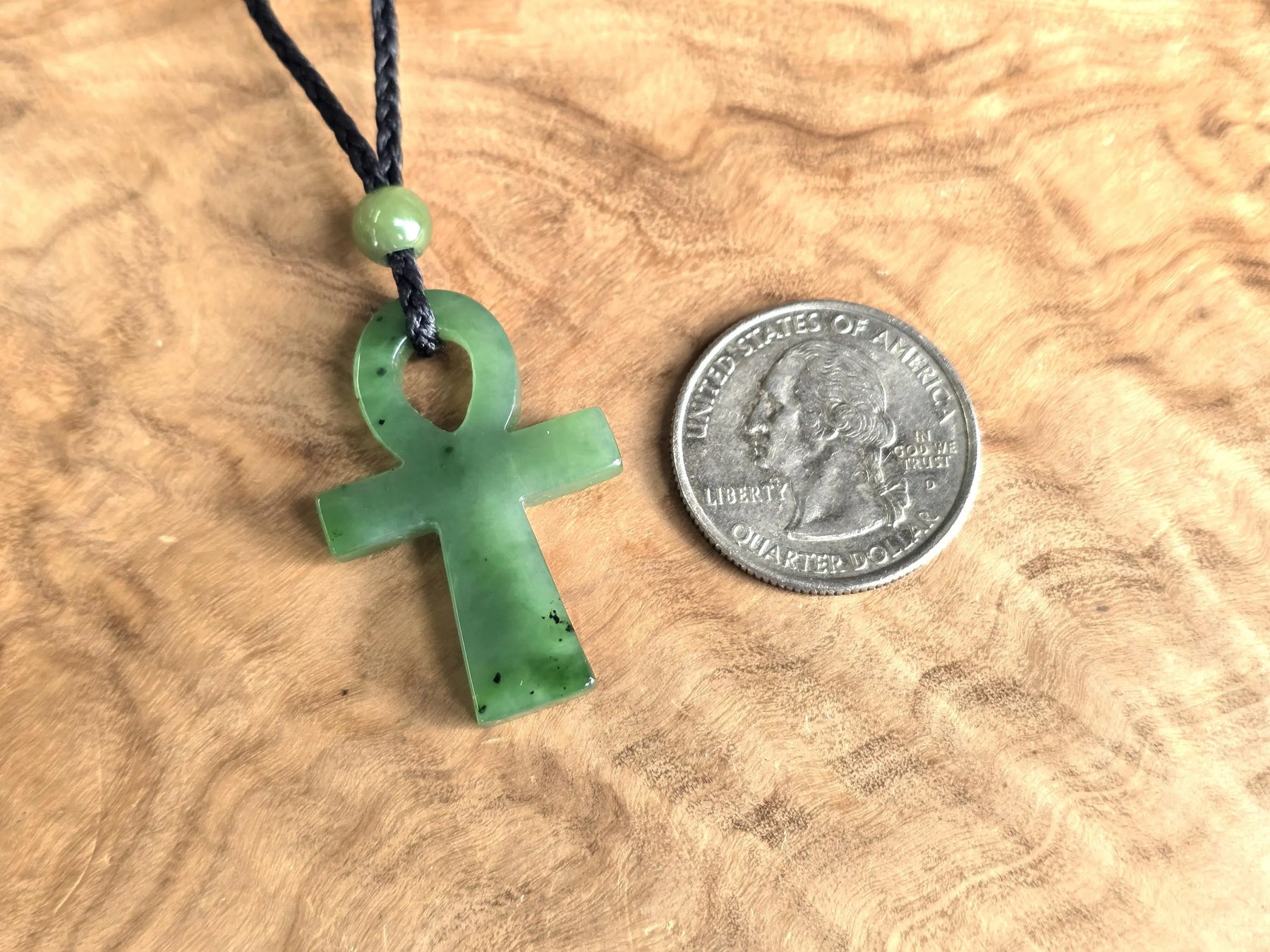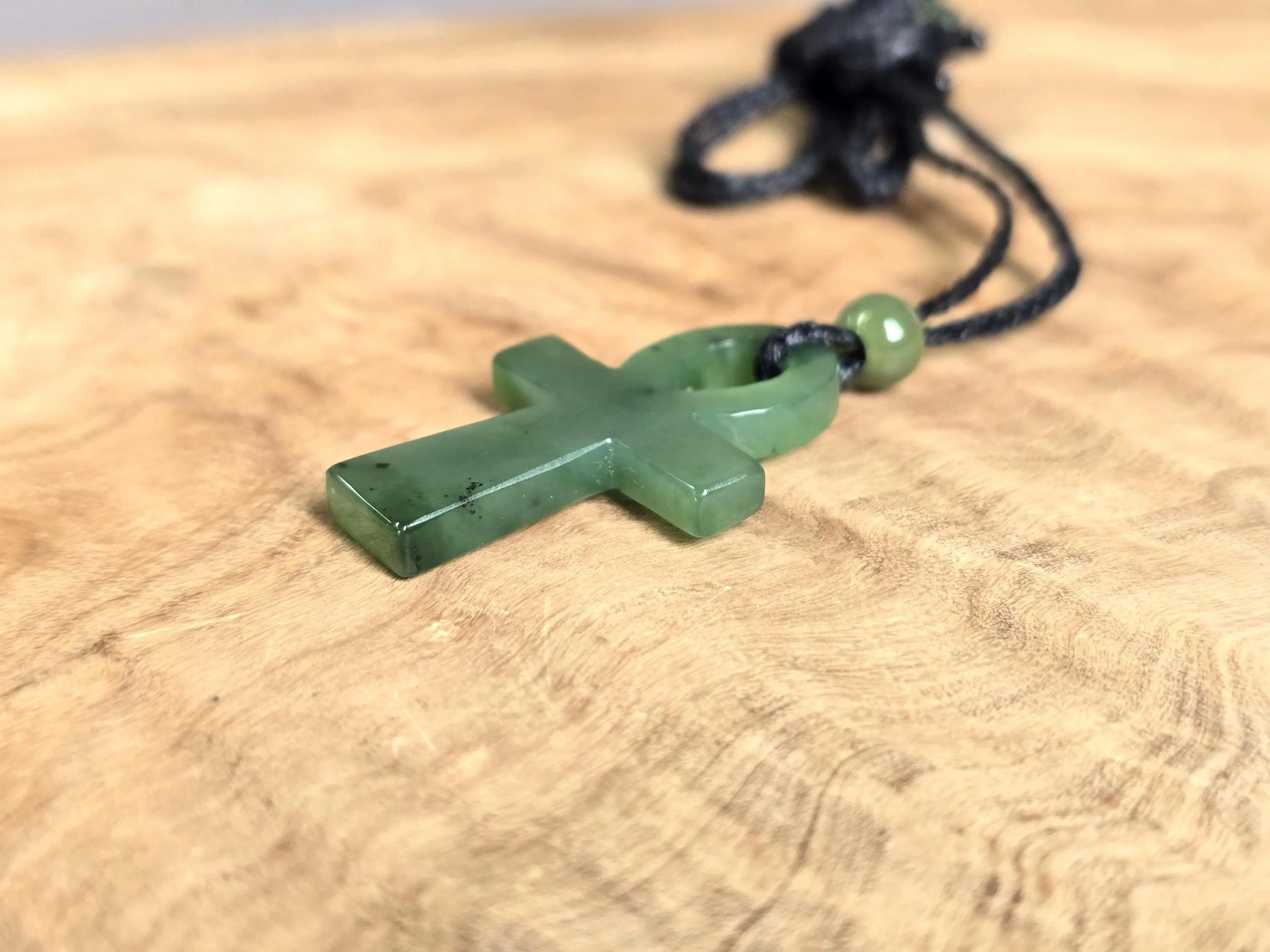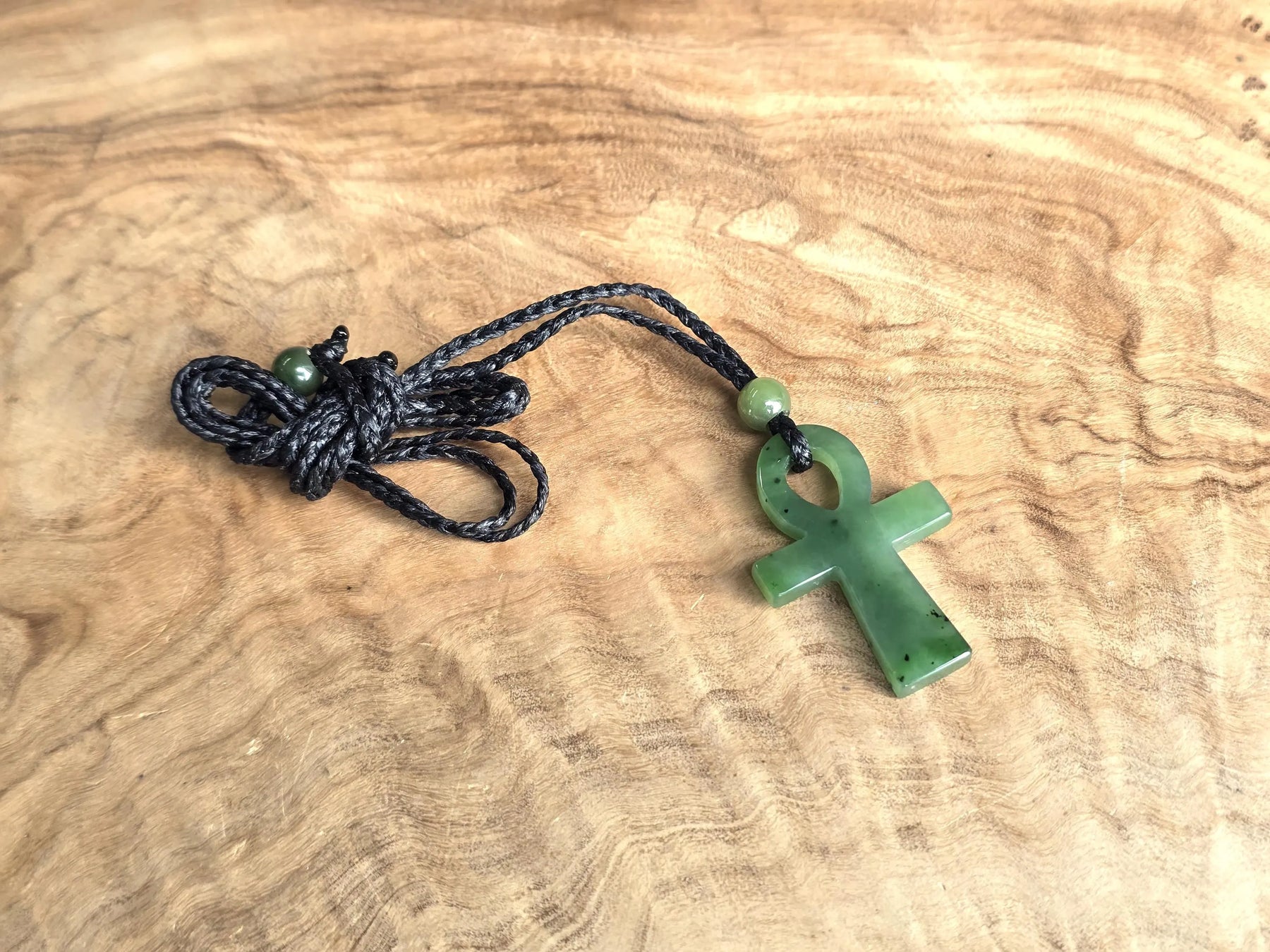 This Canadian Nephrite Jade Ankh Pendant embodies timeless symbolism, representing vitality and spiritual awareness across cultures. Crafted from authentic nephrite jade, the pendant measures 22x34mm and serves as a meaningful accessory for those drawn to ancient wisdom traditions or seeking a tangible connection to life's deeper significance. The piece works equally well as a personal talisman or thoughtful gift. S