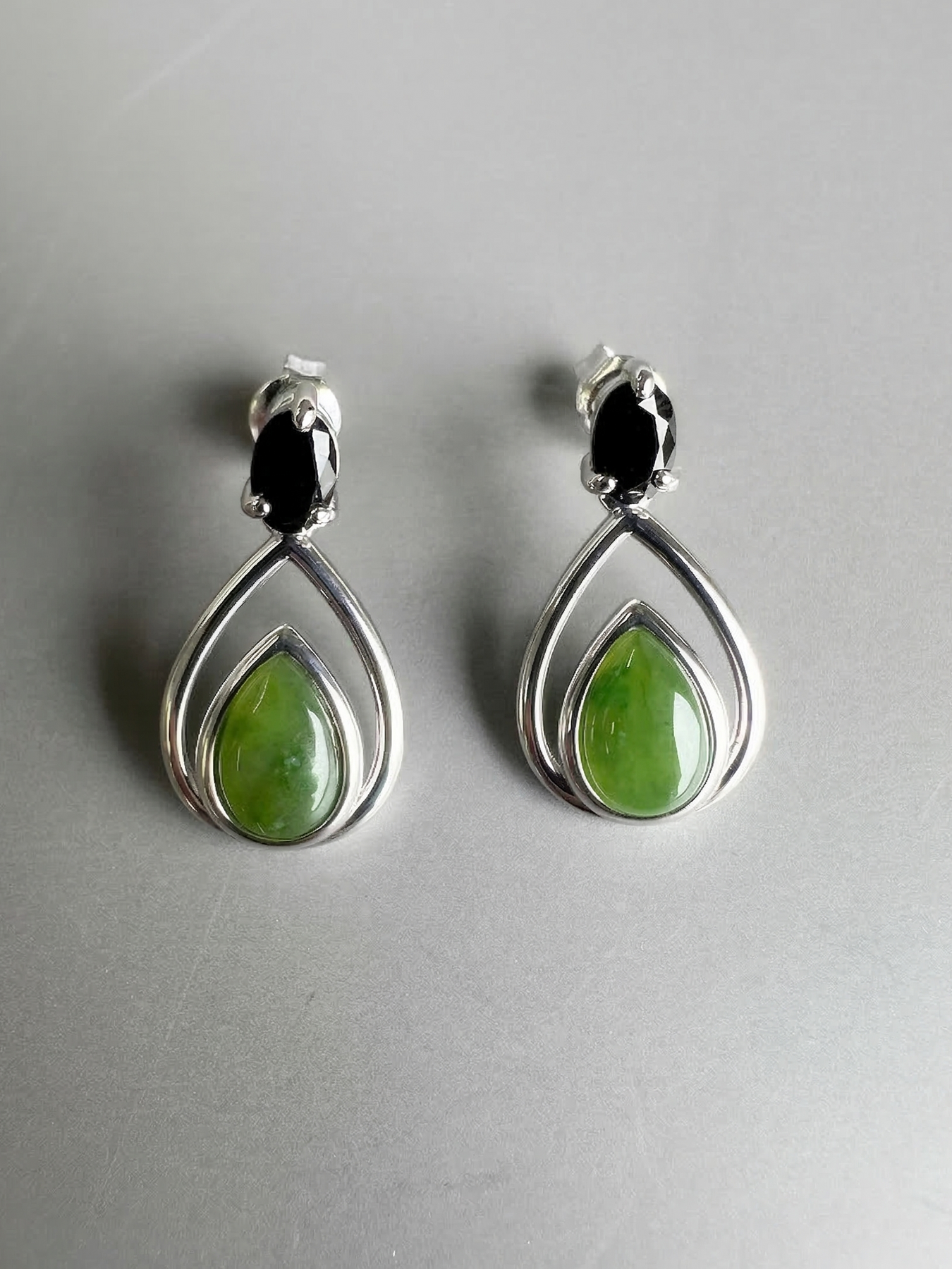 Canadian jade and black spinel sterling silver earrings