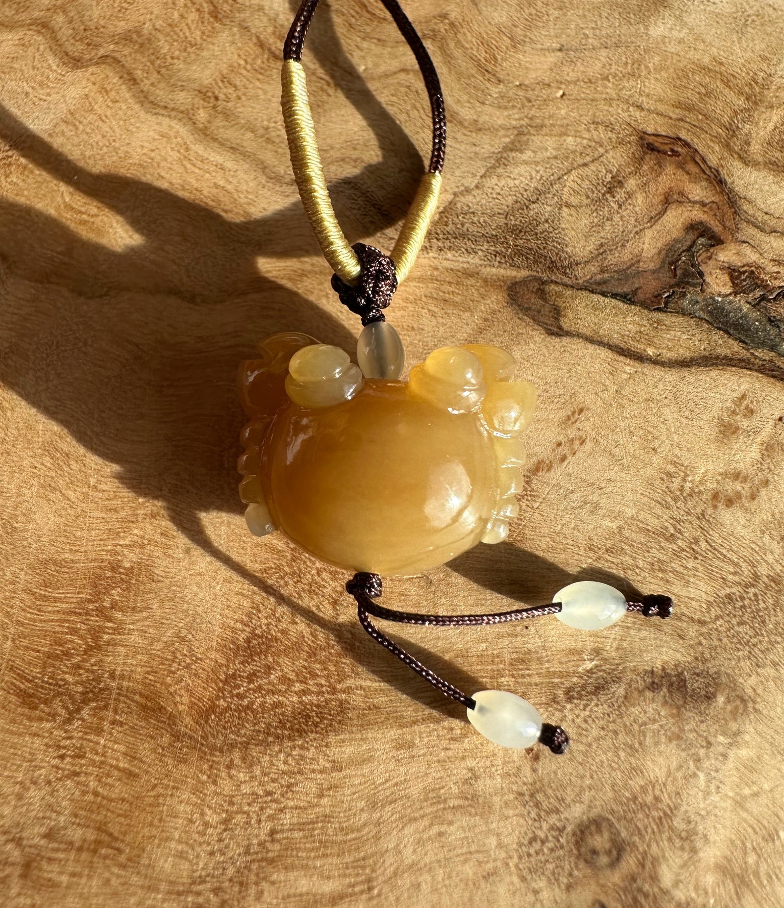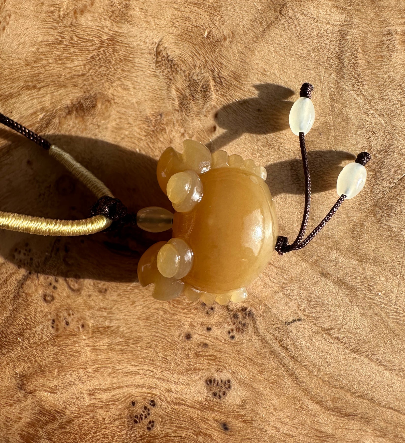 Embrace the gentle beauty of this honey nephrite jade crab pendant, a meaningful piece that celebrates nature's artistry. Measuring 18 x 12mm, this authentic Chinese jade carving showcases warm, golden tones and thoughtful detailing that brings a beloved sea creature to life. Whether you're honoring your connection to the ocean, building a jade collection, or seeking a gift with deeper meaning, this pendant supports your journey. Its versatile size works wonderfully on necklaces, bracelets, or as a cherished keepsake. Let this timeless jade treasure remind you of nature's quiet strength and enduring elegance.