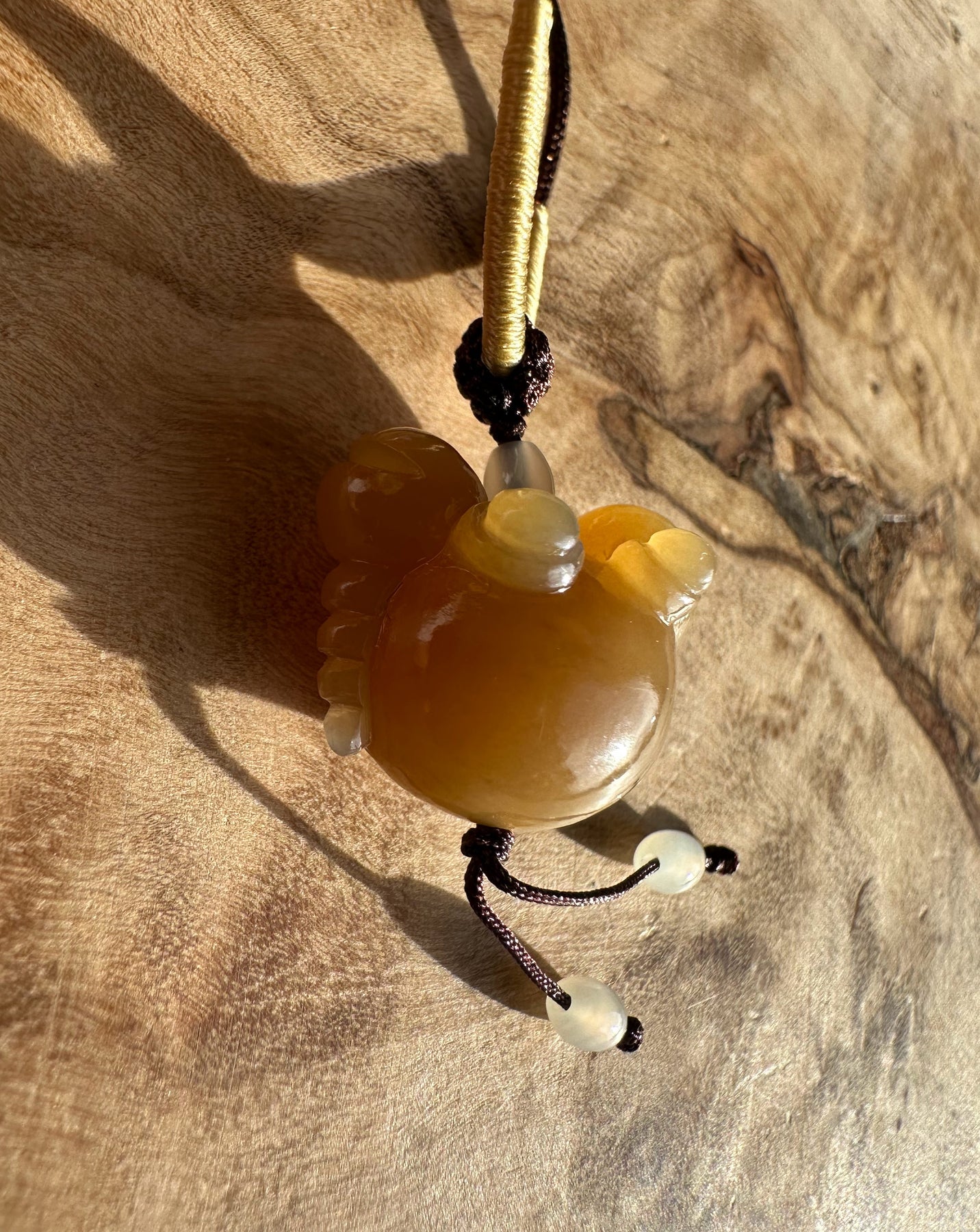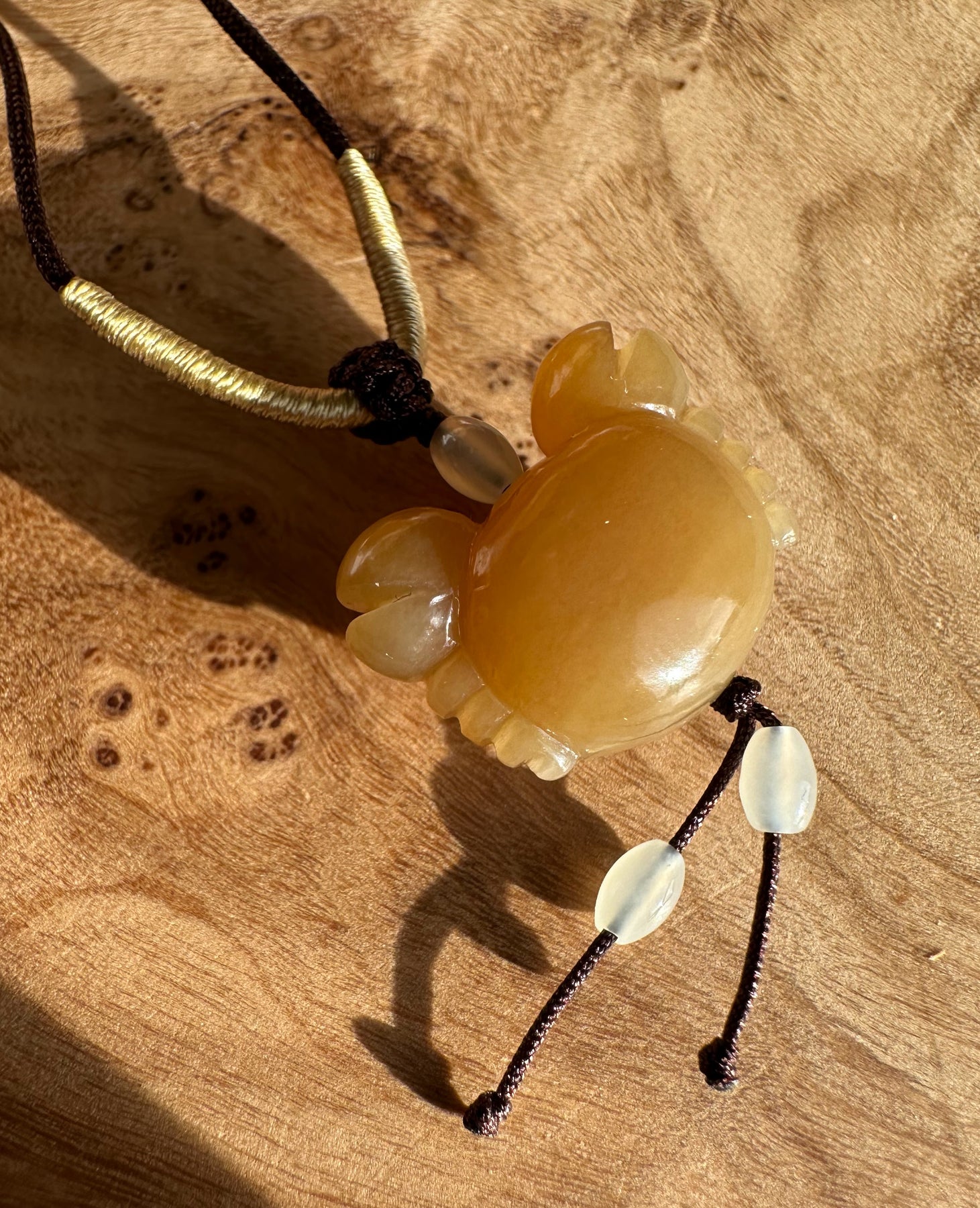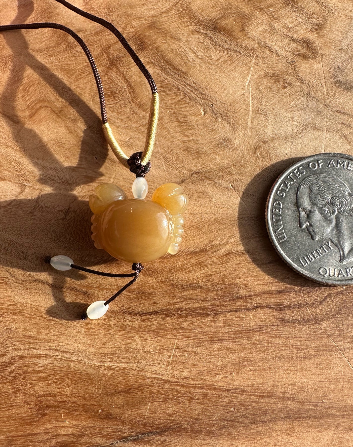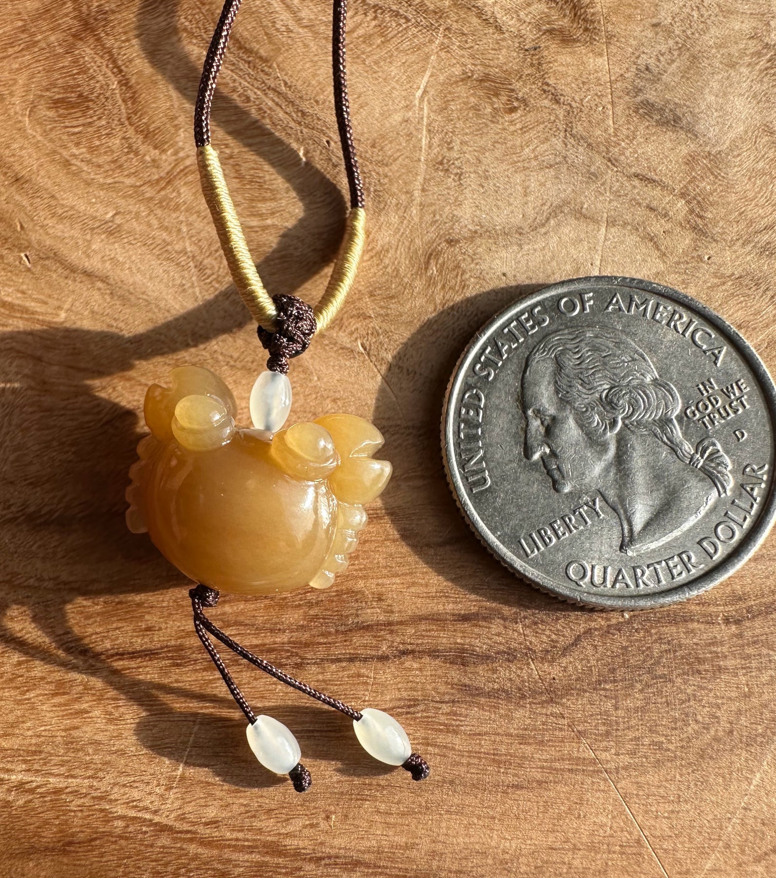 Adorable Honey Nephrite Jade Crab Pendant - 18mm