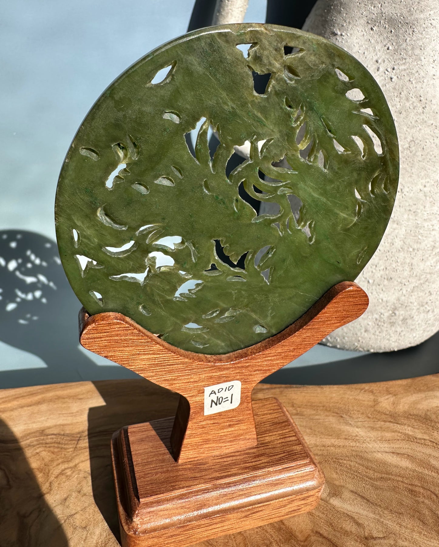 Carved back in the 1980s, has multiple small chips on the edges of the carving