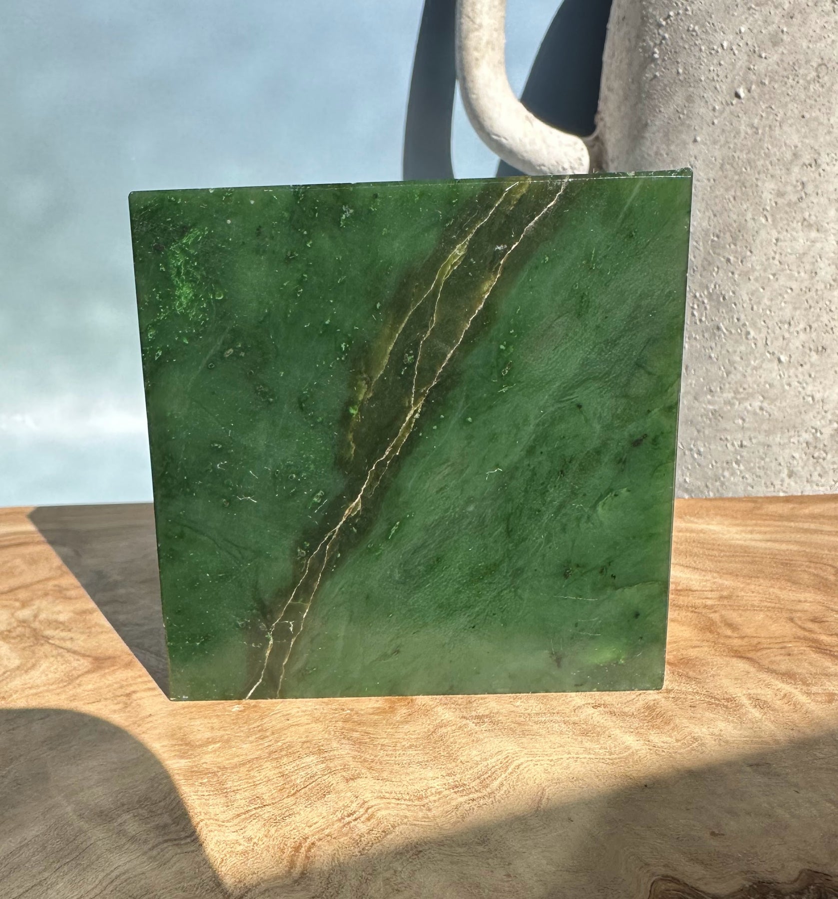 Canadian Nephrite Jade RoughMeasures approximately 2.9" x 2.8" x 3.2"Weighs approximately 2.14 lbs It has a little oil on it to help show its color