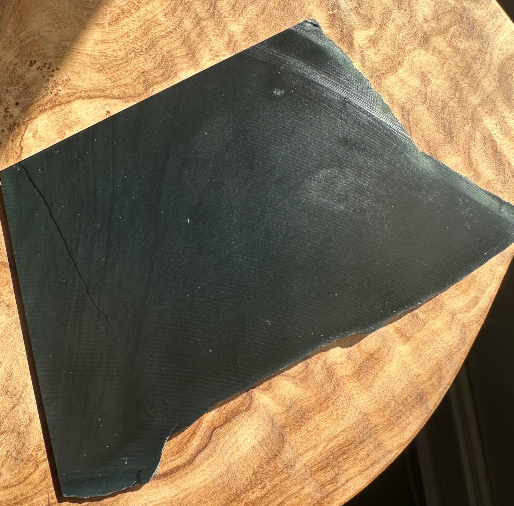 Black Wyoming Jade labeled Edwards Black from the Tom Talpey CollectionMeasures approximately 5.5" x 3.5" x .2"Weighs approximately 185 grams