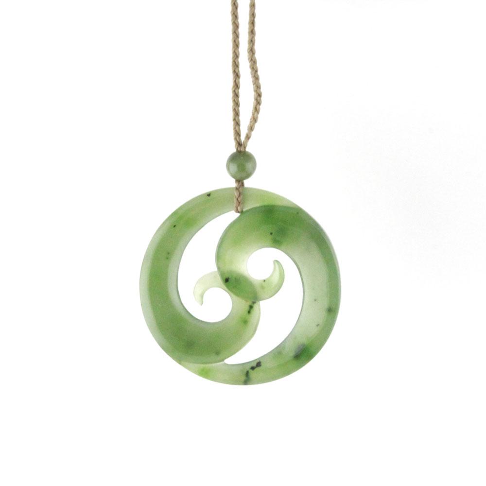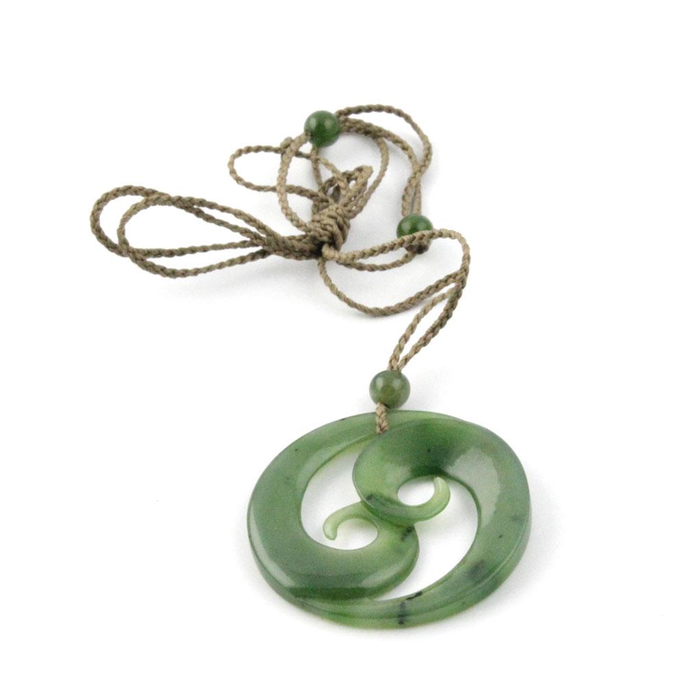 Beautiful Maori Styled Pendant carved out of solid jade. A striking Jade Pendant. Inspired by Maori designs. Threaded on a braided waxed cord, comes complete with a Hand Crafted Wooden Display Box.