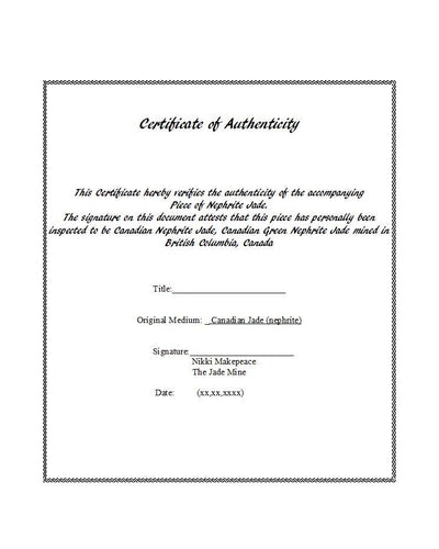 I am currently down at the Tucson Gem Shows and cannot make a certificate until I am back.