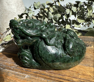Spectacular Hand Carved Jade Dragon Turtle
