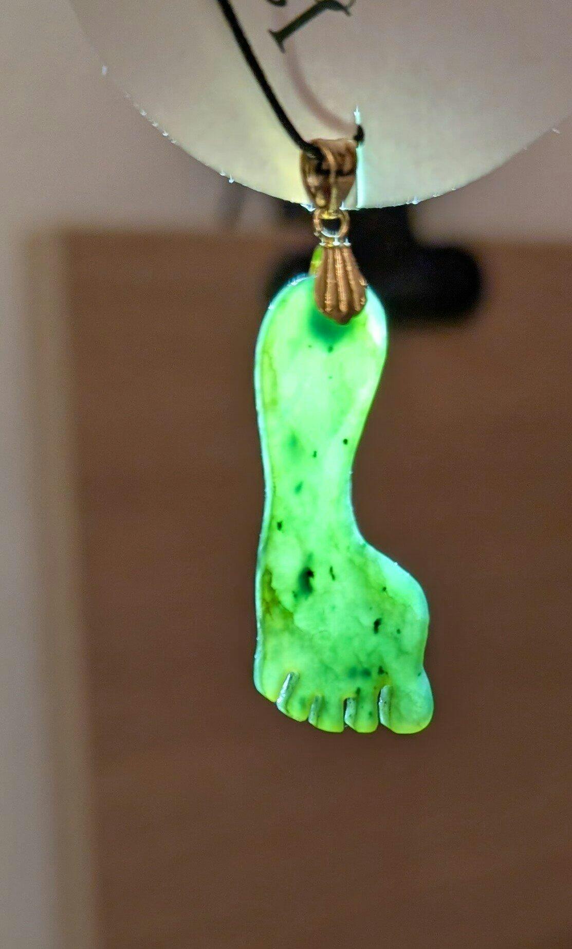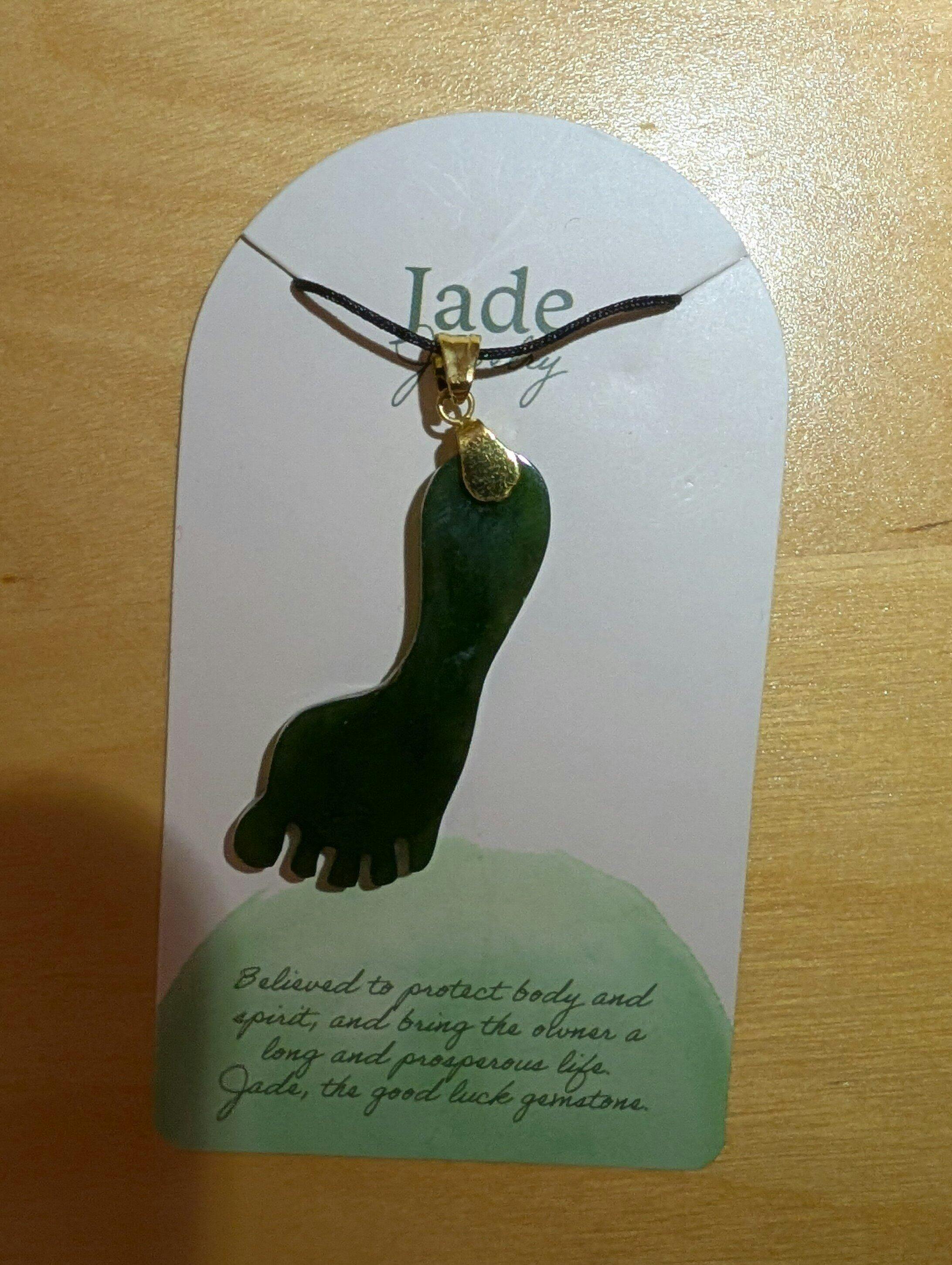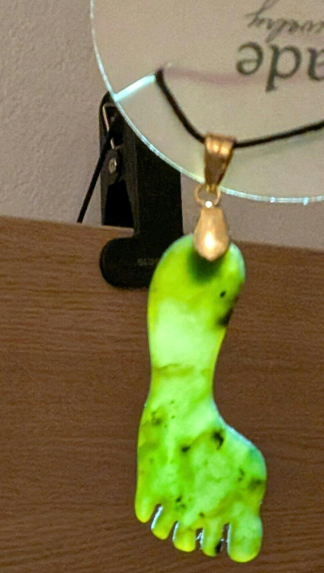 Canadian Nephrite Jade big foot pendant. This pendant measures approx. 1.5". The metal bail is brass.