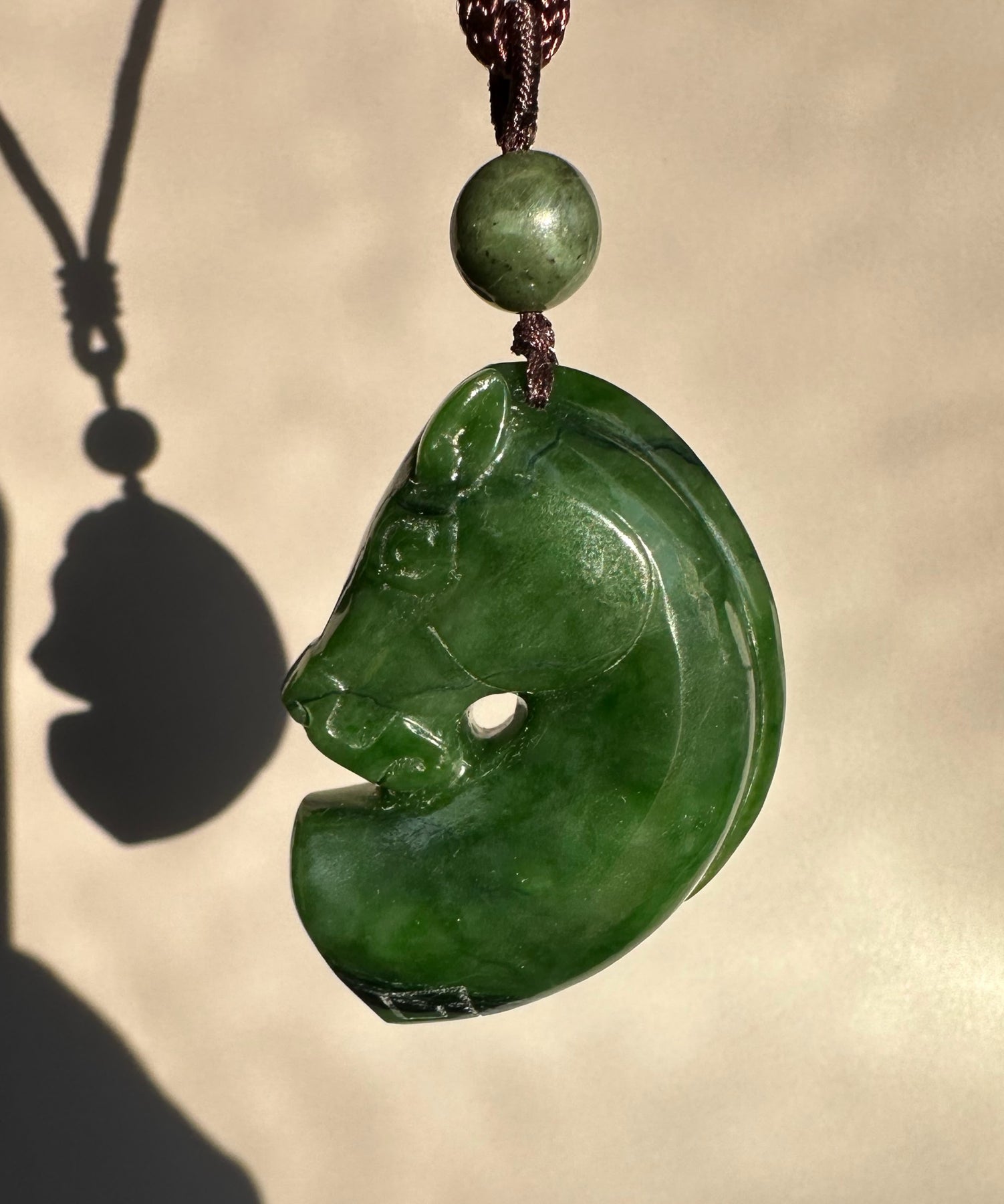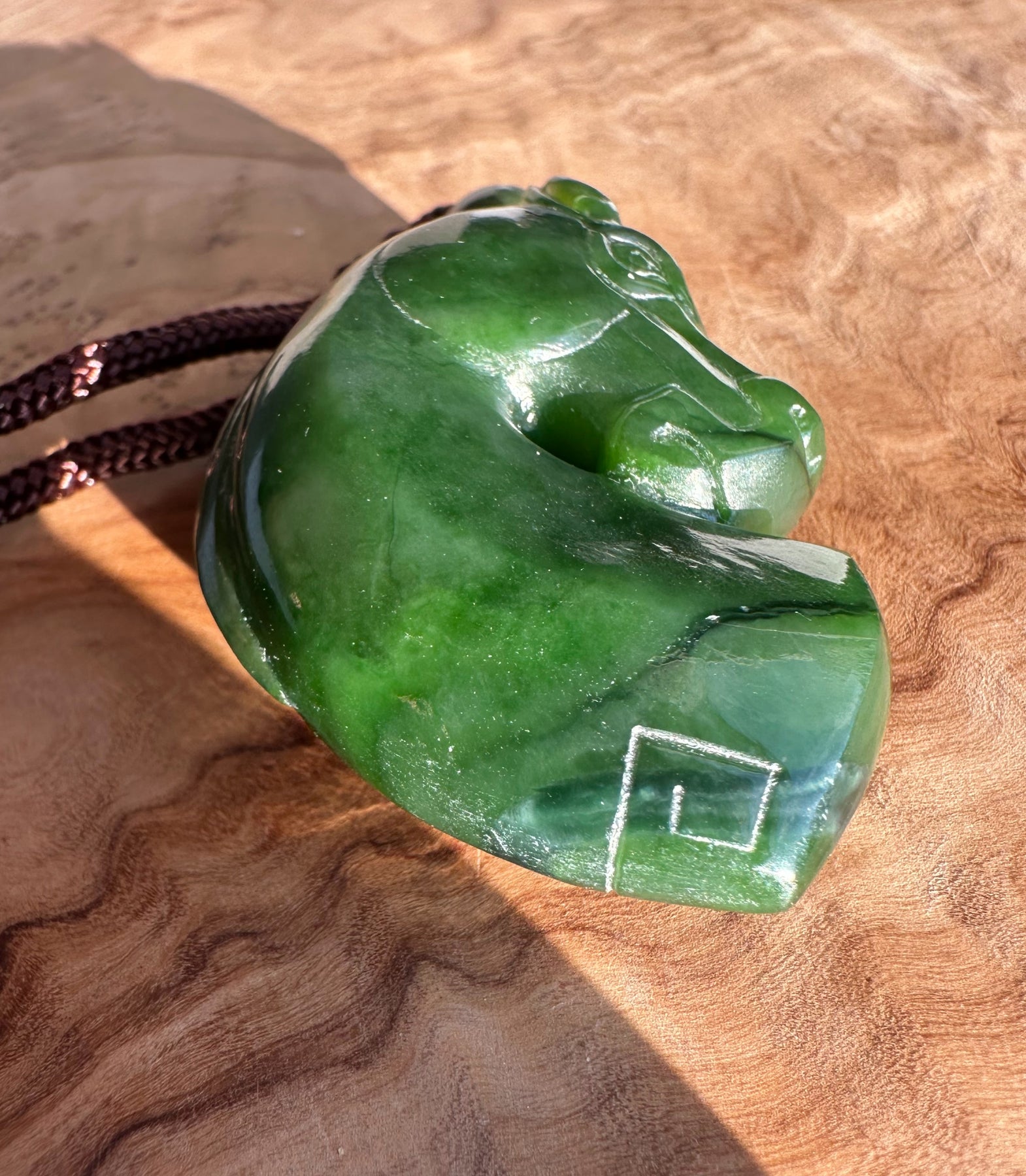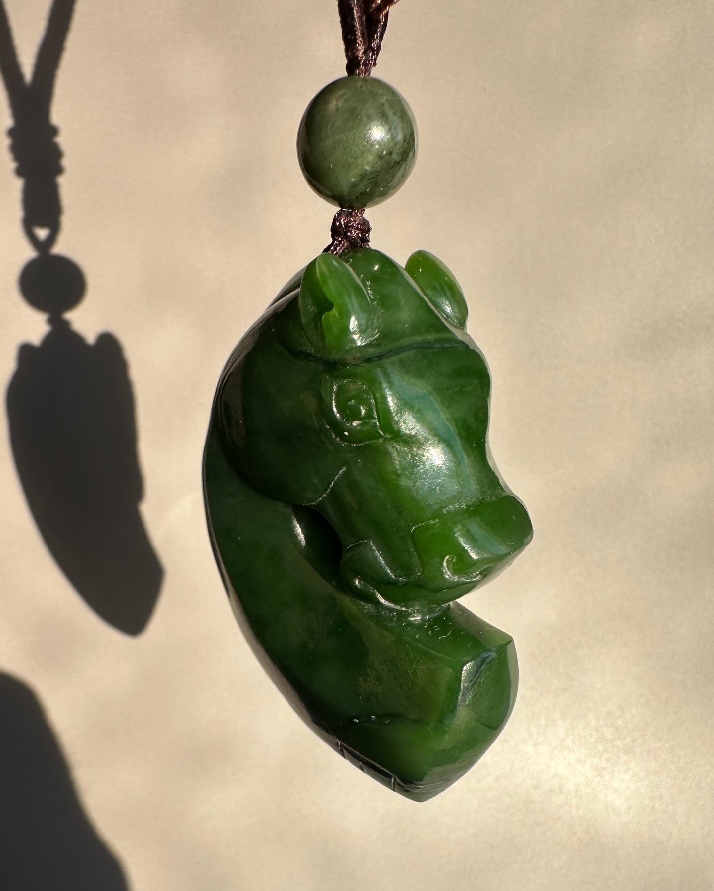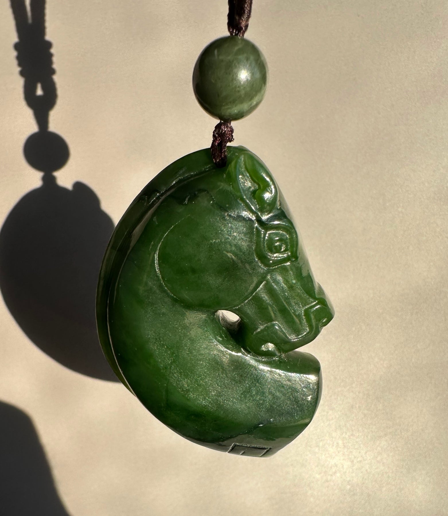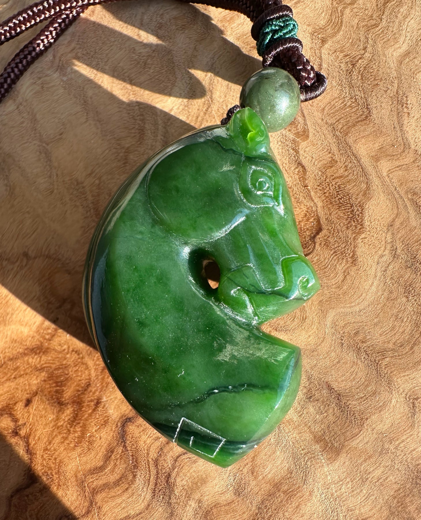 Hand-Carved Canadian Jade Horse Pendant