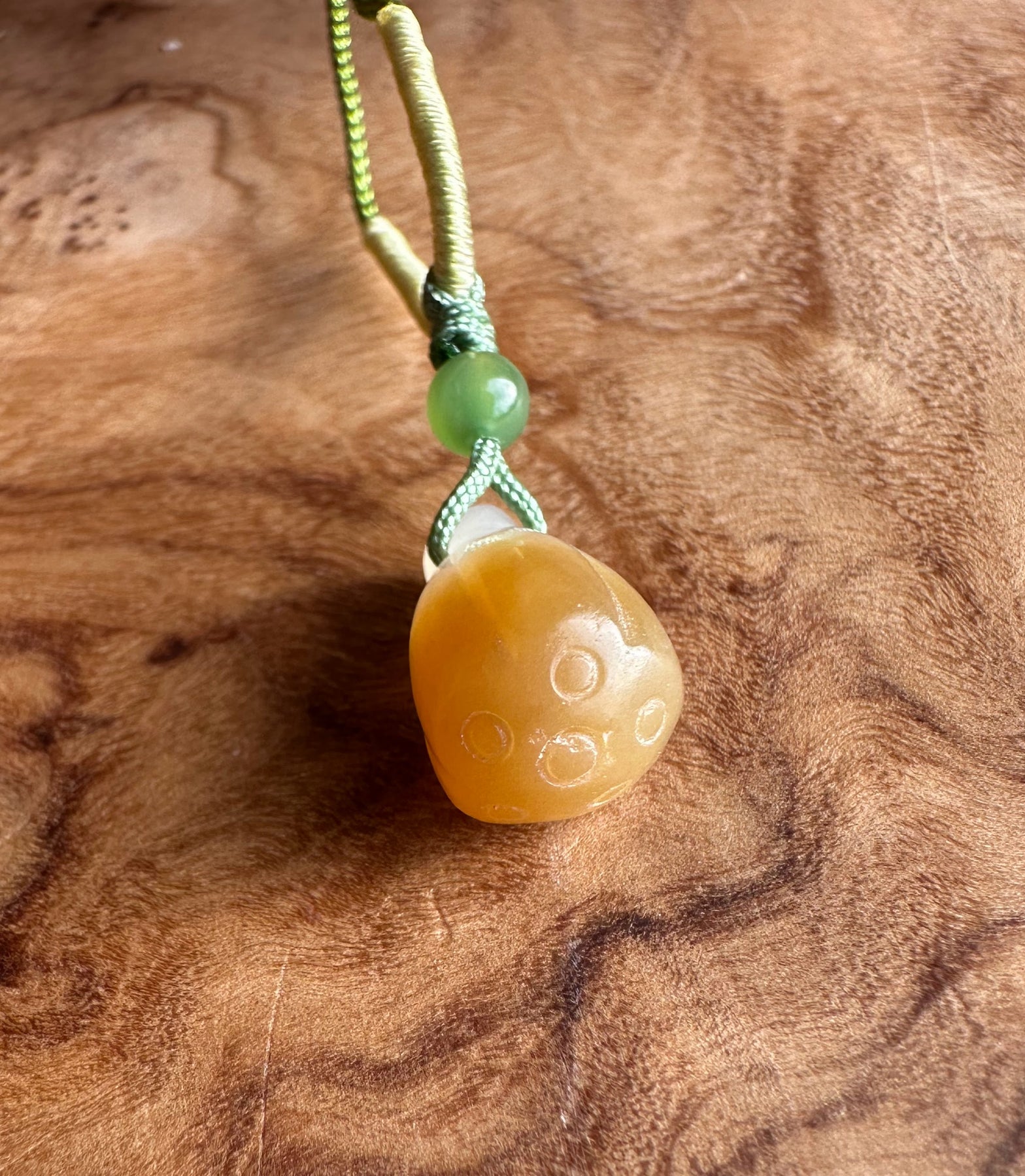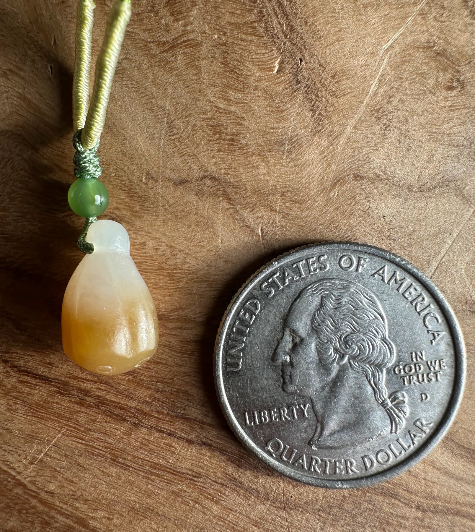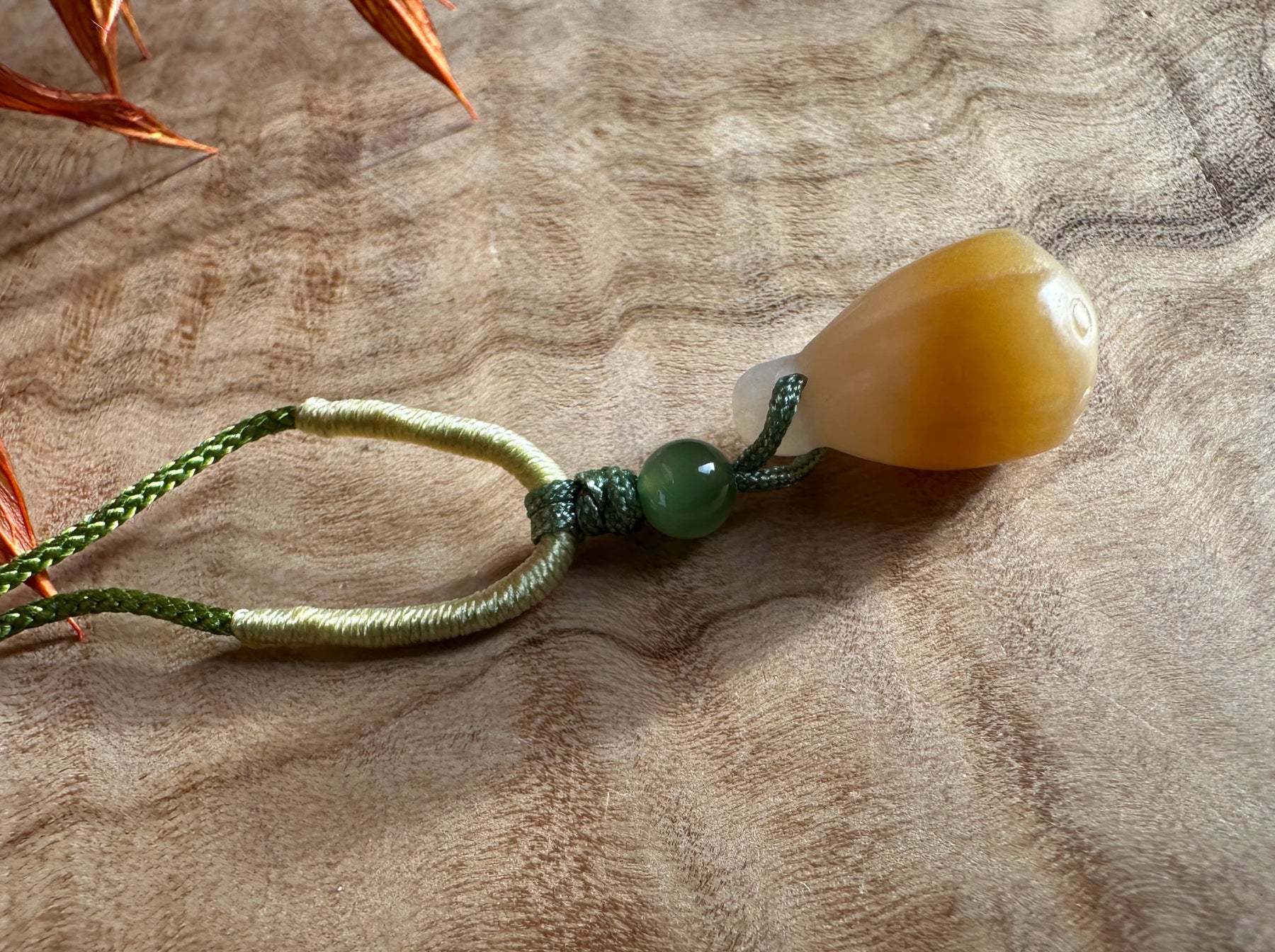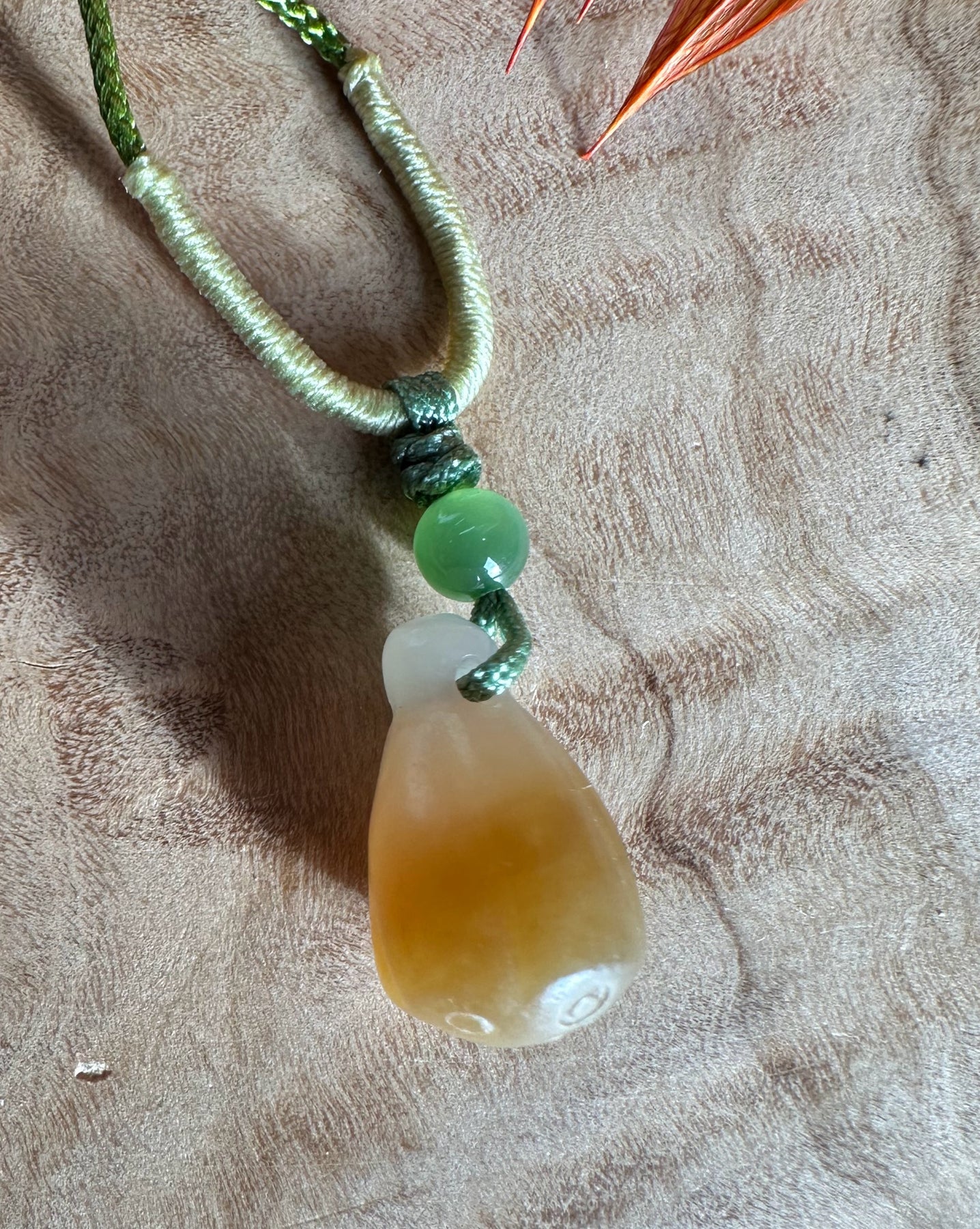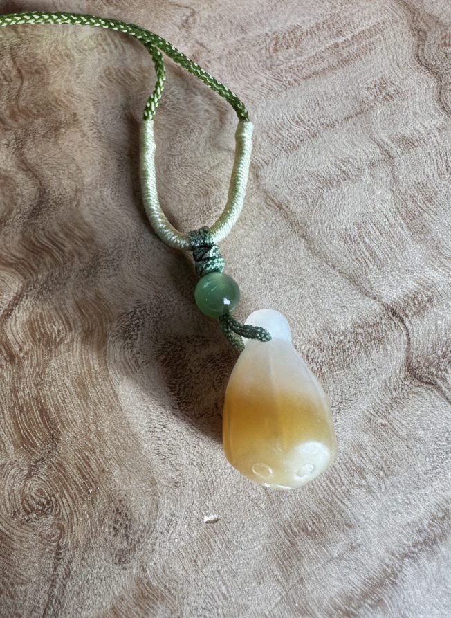 Chinese nephrite jade pendant showcases the subtle warmth and translucency characteristic of premium honey-toned nephrite. Measuring 14 x 8.5mm, the compact design offers versatile styling for both everyday wear and layered necklace combinations. Suspended on a durable nylon cord, this piece combines traditional jade craftsmanship with practical wearability. Nephrite jade is prized for its resilience and smooth, buttery texture, making it an excellent choice for those seeking an understated yet meaningful accessory with enduring appeal.