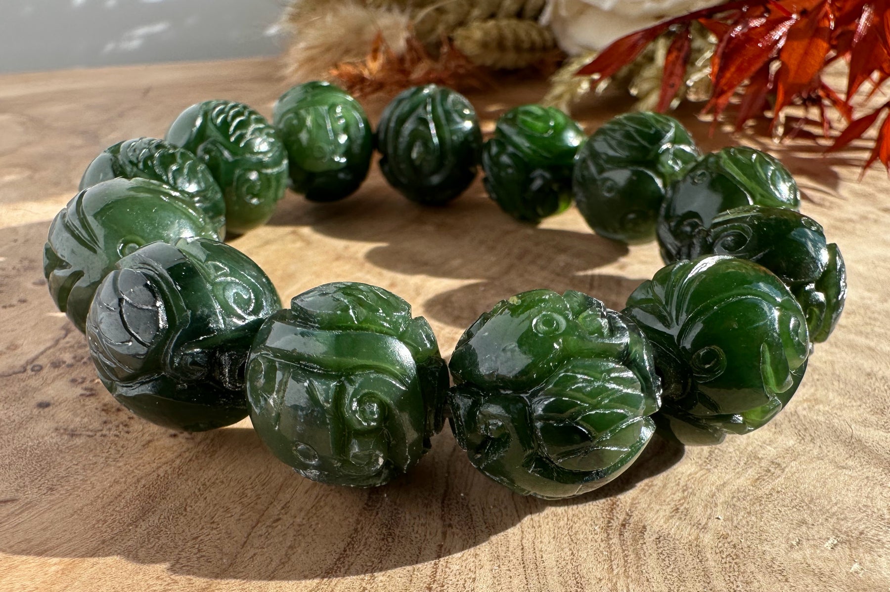 Canadian Jade Carved Bead Bracelet