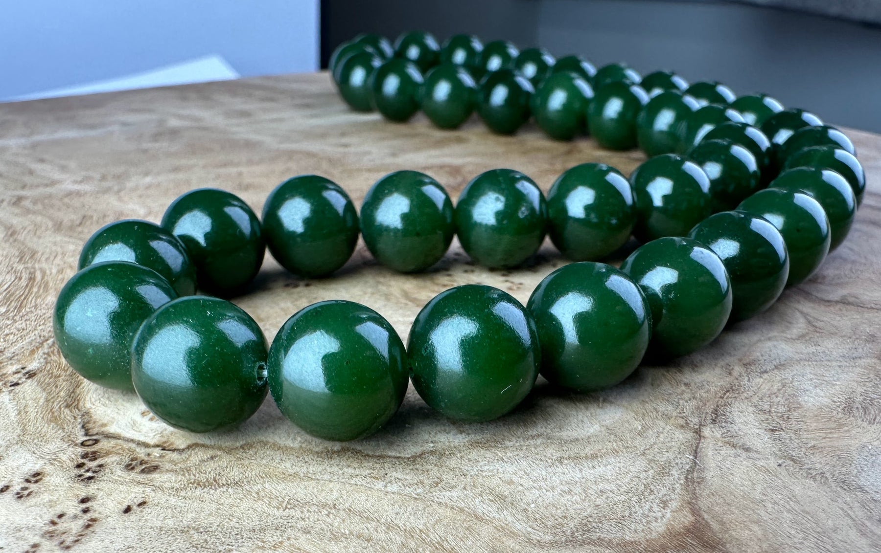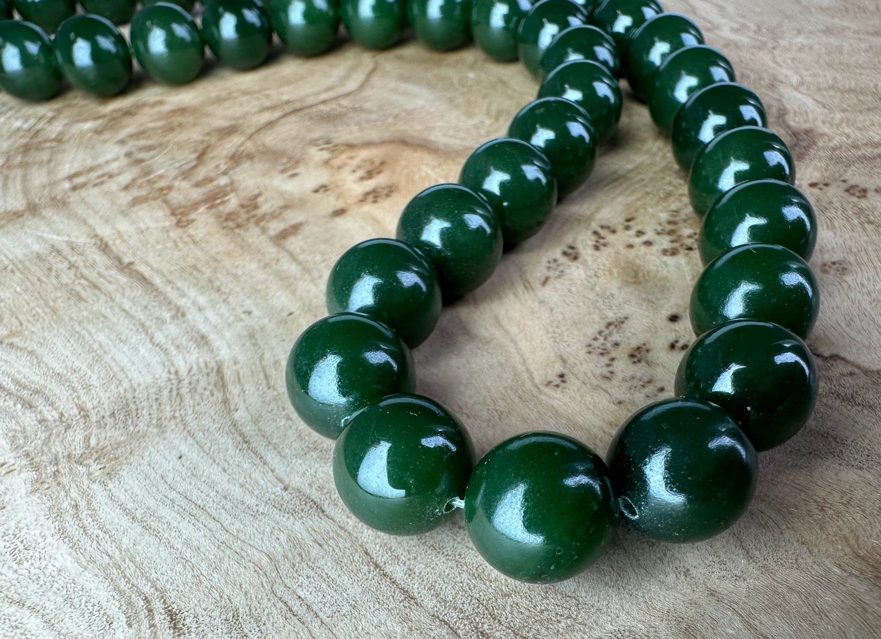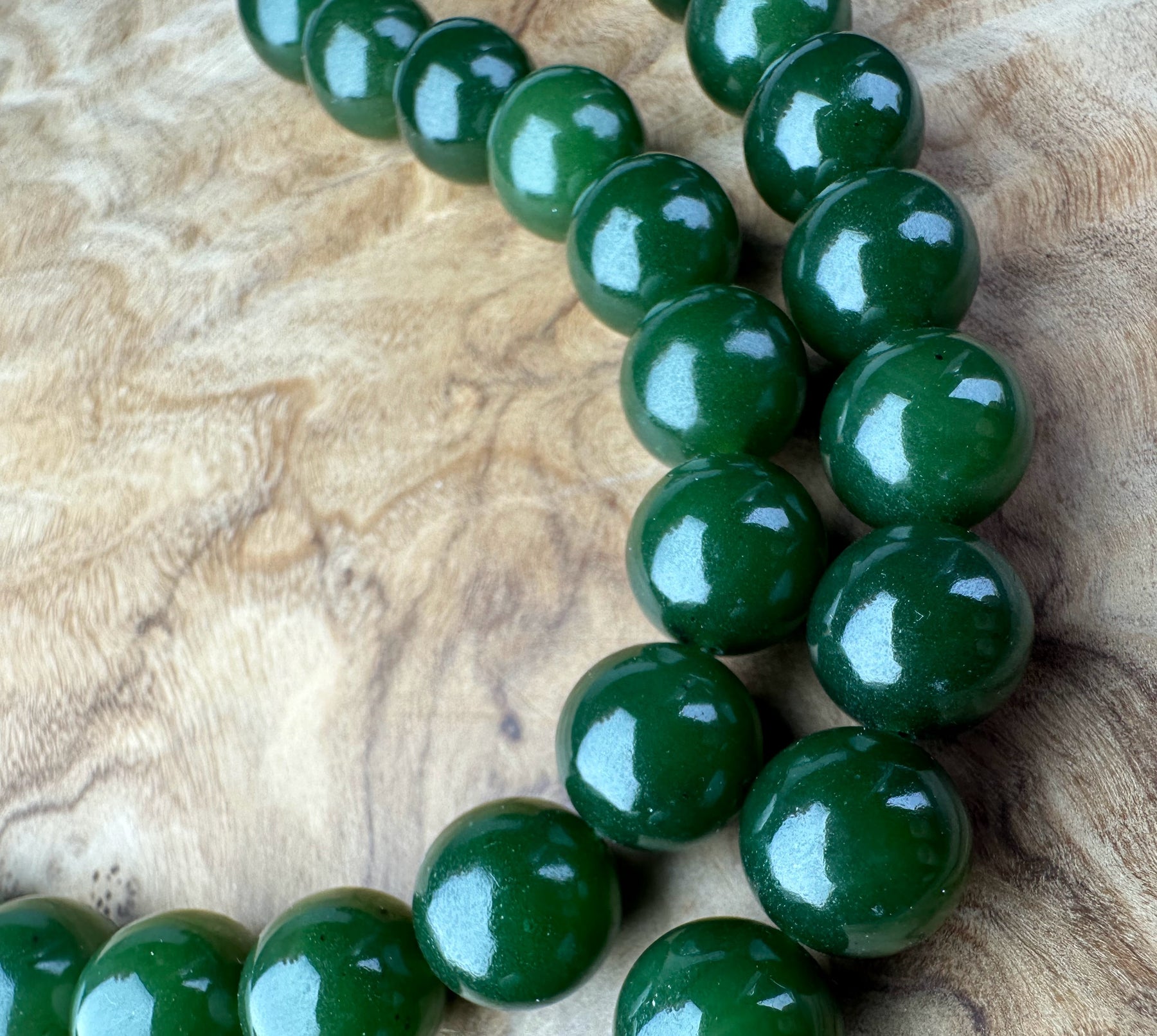 Rich Dark Green Canadian Nephrite Jade 10mm unstrung beads